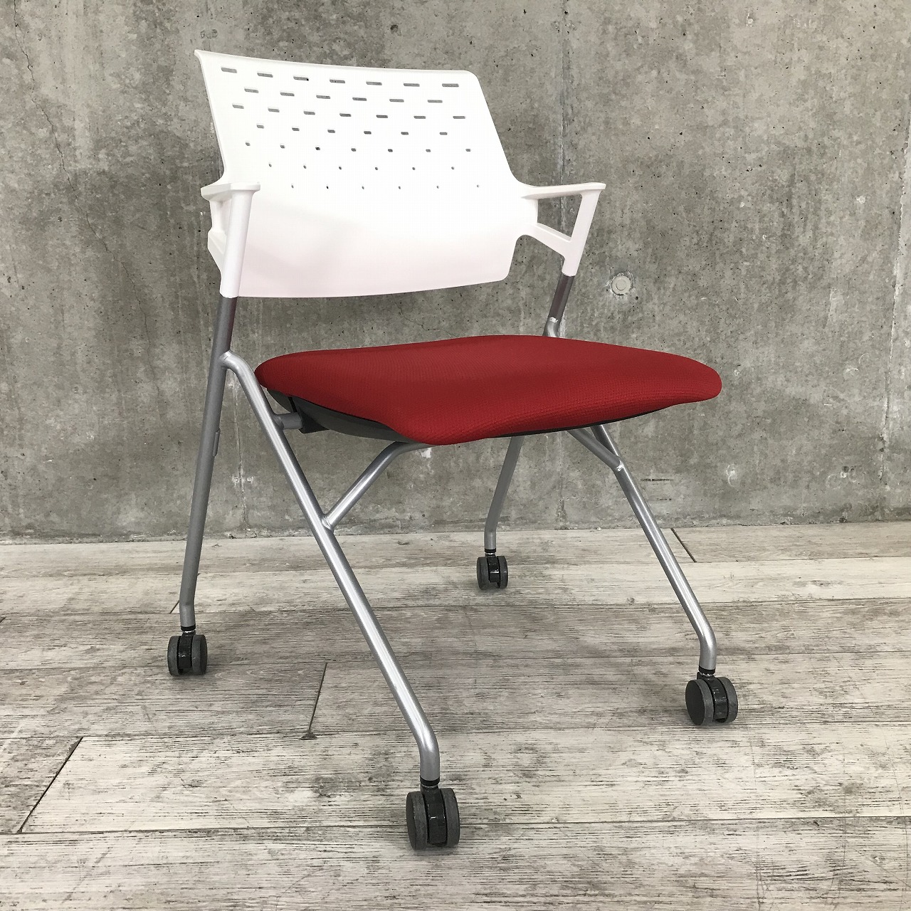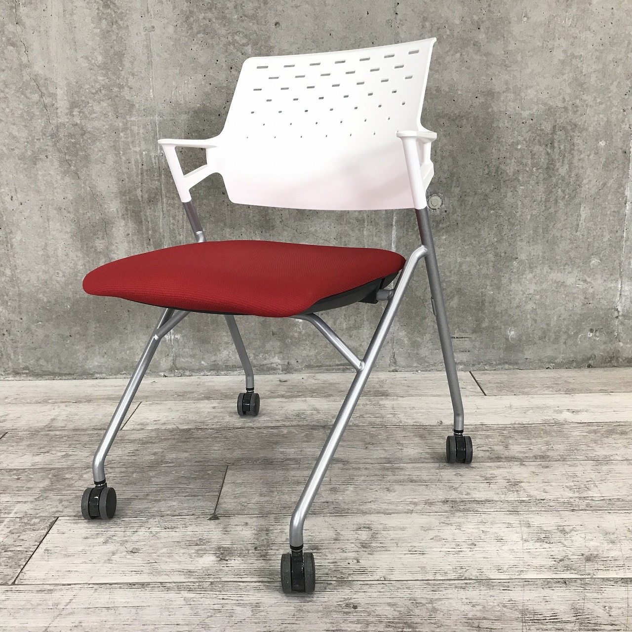【分厚いクッションで会議中も疲れない!】コクヨ(KOKUYO)ピエガチェア ■色:座面/レッド 背もたれ/ホワイト ネスティングタイプ- 千葉店