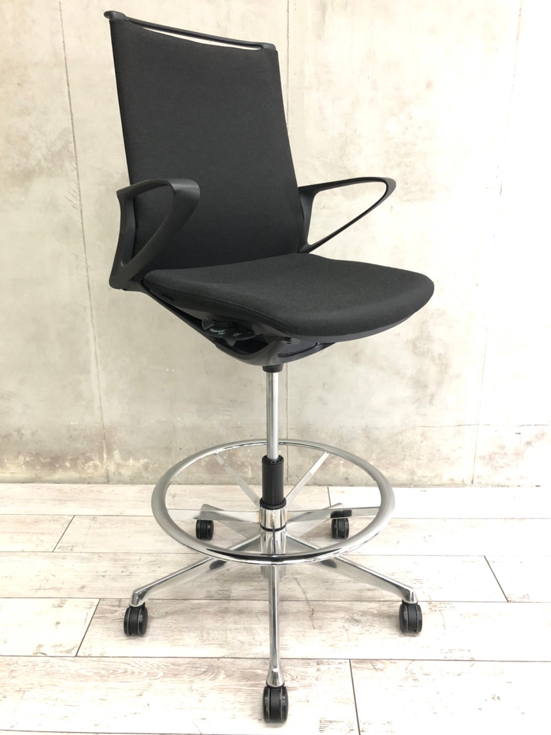 【希少品入荷!】数々の賞を受賞し、肘付きで足元にはしっかりと足掛けが付いています!長時間の会議、デスクワークも疲れません!一般的なハイチェアを覆す商品です!■オカムラ/モード/ブラック- 立川・八王子店