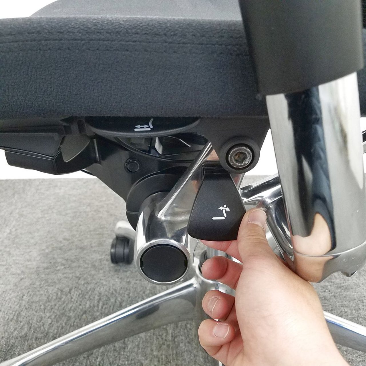 座面左下のレバーにて、50mmの範囲で10mmピッチ・6段階の調節が可能です。