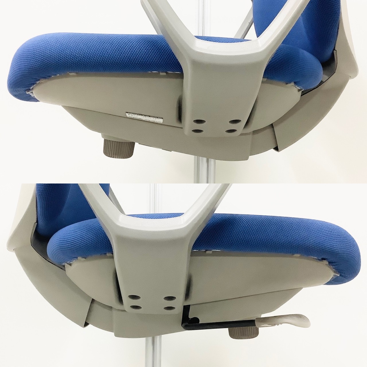 なので、「どれでも同じでしょう」と過小評価されがちですが、さすがのオカムラ製!座面の無段階上下調整やリクライニングの反発の強さ調整などに加え、リクライニンする際に足首の位置を支点にして動く、アンクルチルトリクライニングという特殊な機構が搭載されています。「人間が寄りかかる動き」にぴったりとフィットし、快適さをもたらしてくれます。