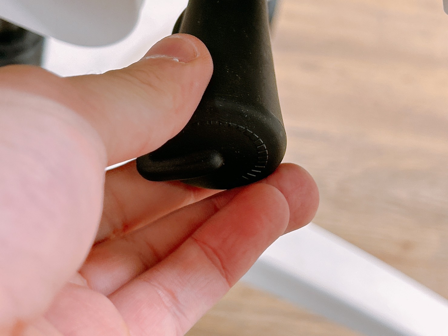 チェアのくるぶしを支点に背もたれと座面が連動して動き