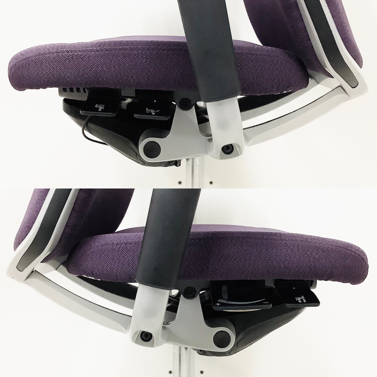 - リクライニングの固定と解除、リクライニング反力の強弱、座面の高さ調整、座面のスライド調整の操作を、すべて座面の裏側に集約。すべての調整を無駄な動きをすることなく、座ったままの状態で行えます。