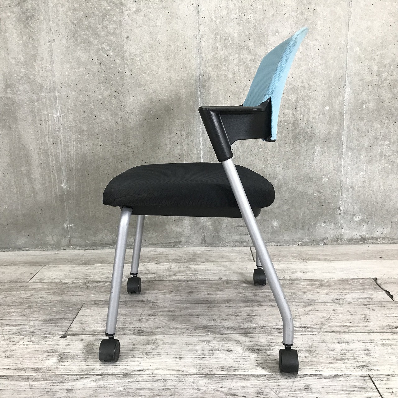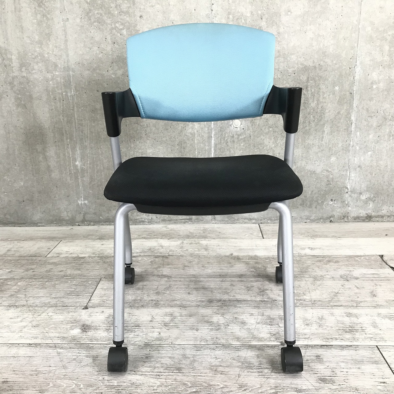【鮮やかなライトブルー!座面はブラックでオシャレなツートンカラー!】コクヨ(KOKUYO)スタッキングチェア プロッティチェア ■色:背ライトブルー 座ブラック- 埼玉本店