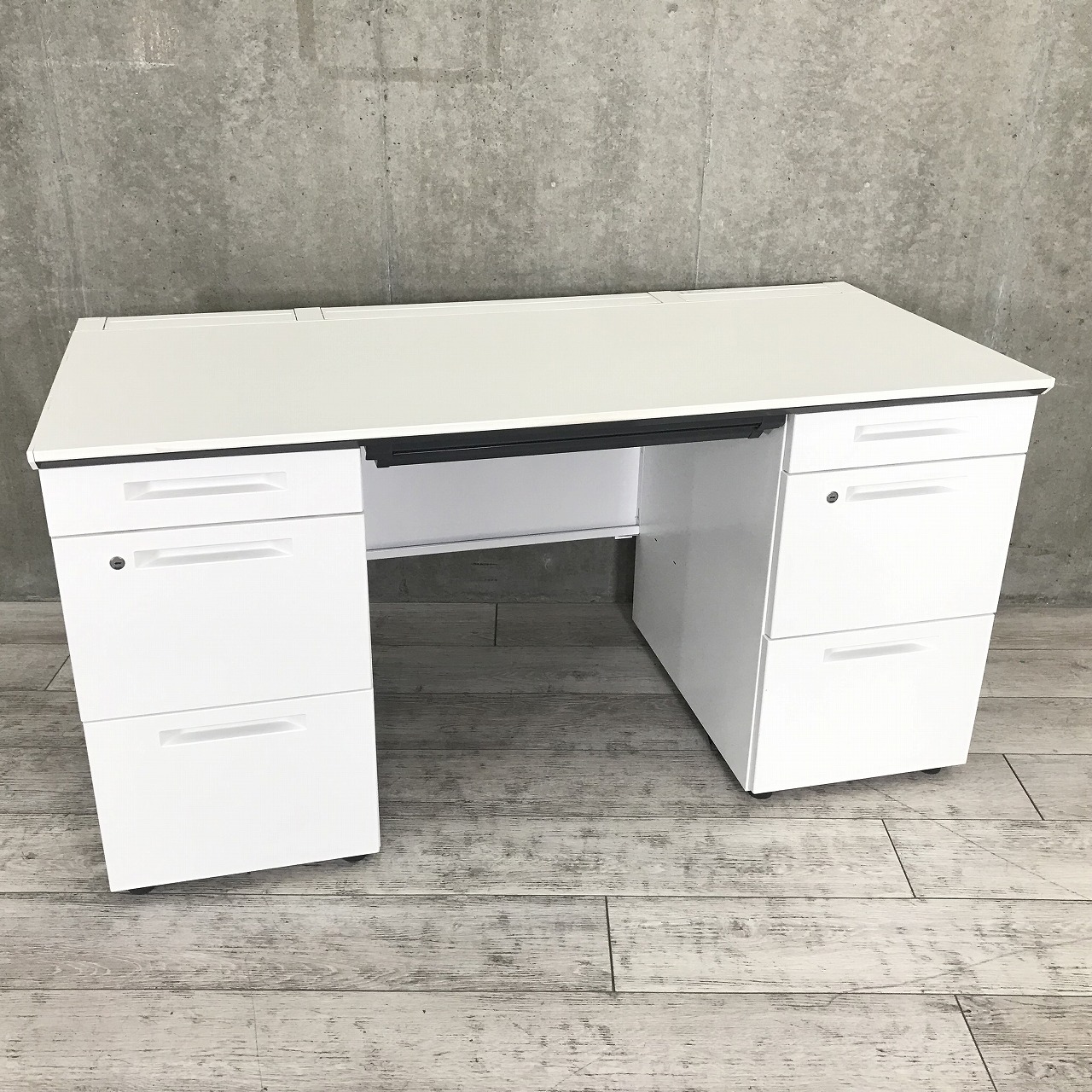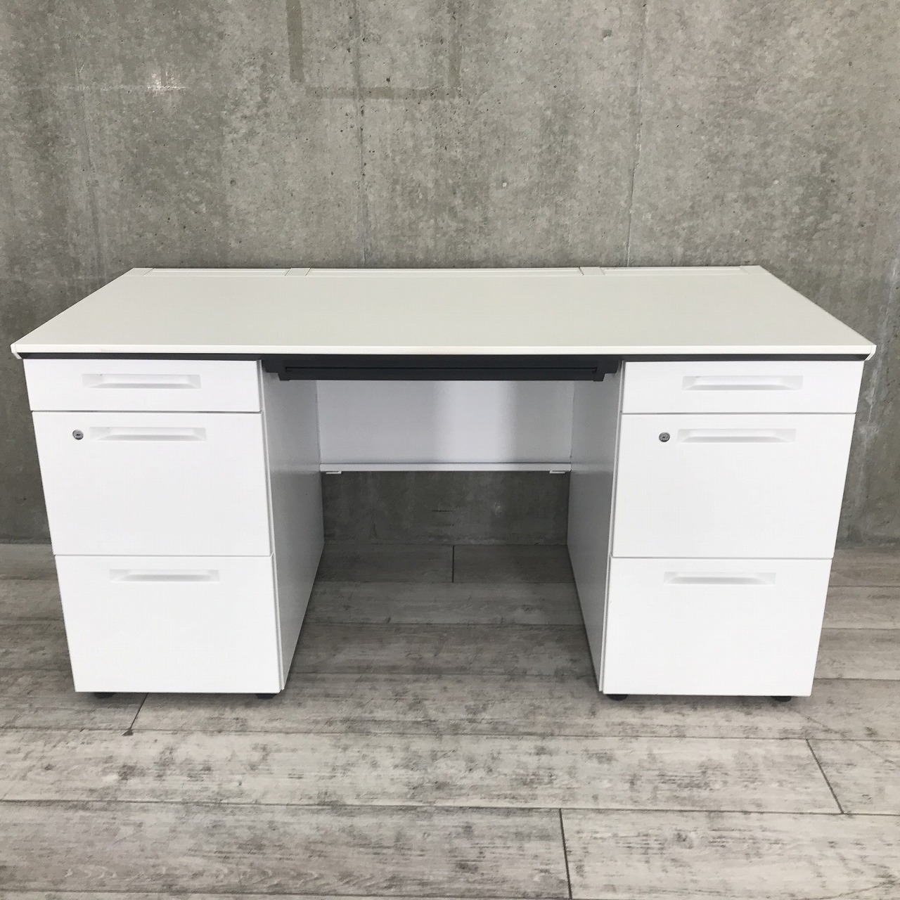 【在庫入替セール】コクヨ iSシリーズ 両袖机 W1400の定番サイズ ホワイト 鍵付き シリンダー錠 両側の引き出しで大容量の収納が可能 【愛知・名古屋・豊田・静岡・浜松】