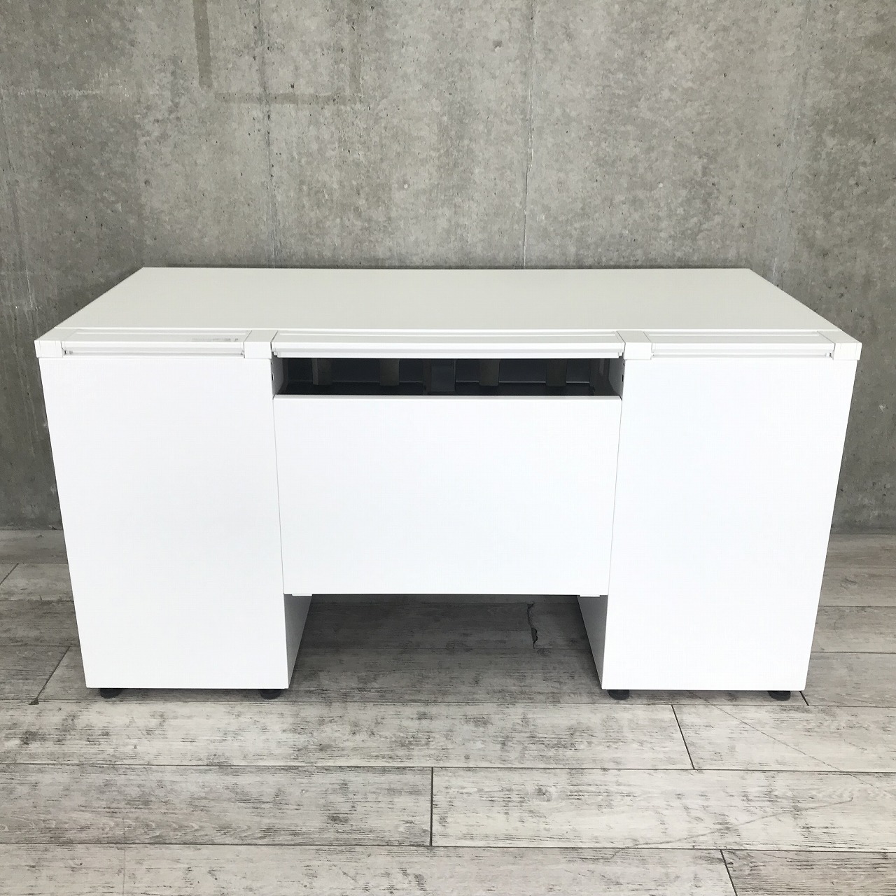 横幅1400mmと幅広いワークスペース、左右大量のA4収納、またPC配線用に