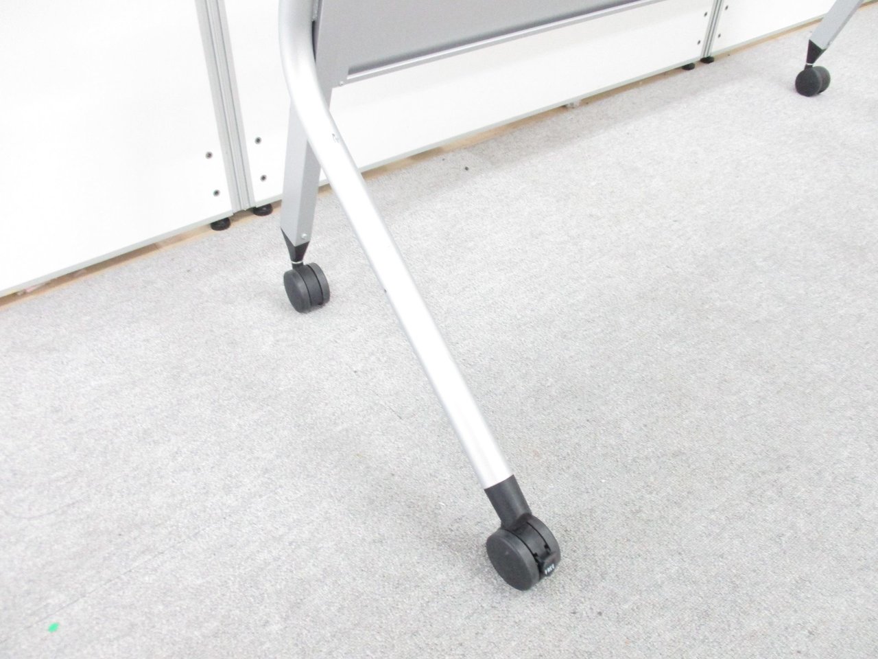 - 一部不具合あり天板歪み、アジャスター無し、キャスター使用不可ようなそのテーブルの本来の効用を果たすための機能以外の一部が使用不可な状態。(例、キャスターロッ ク機能使用不可、棚板無し等がある。)