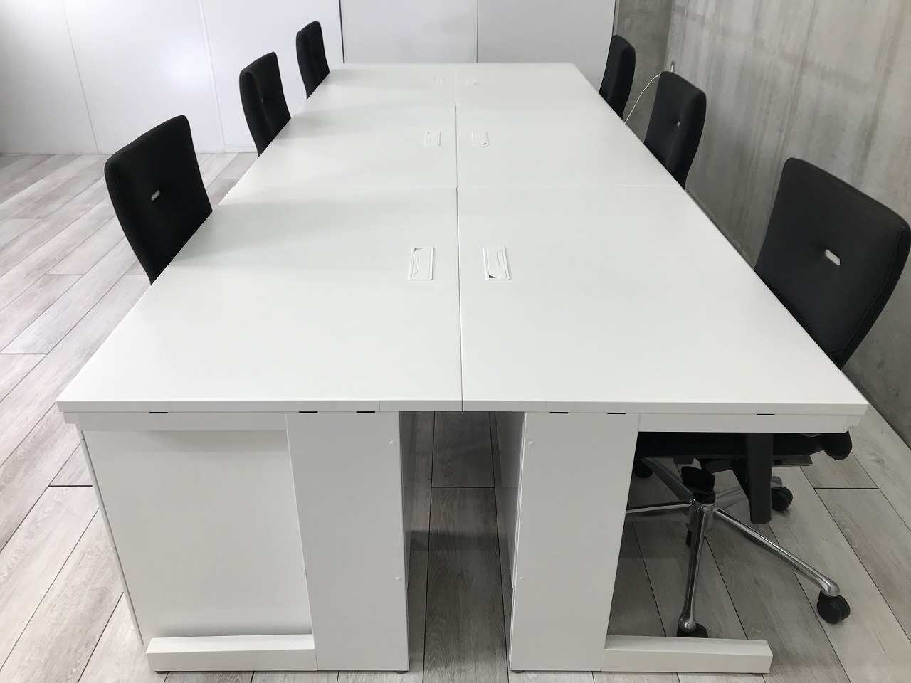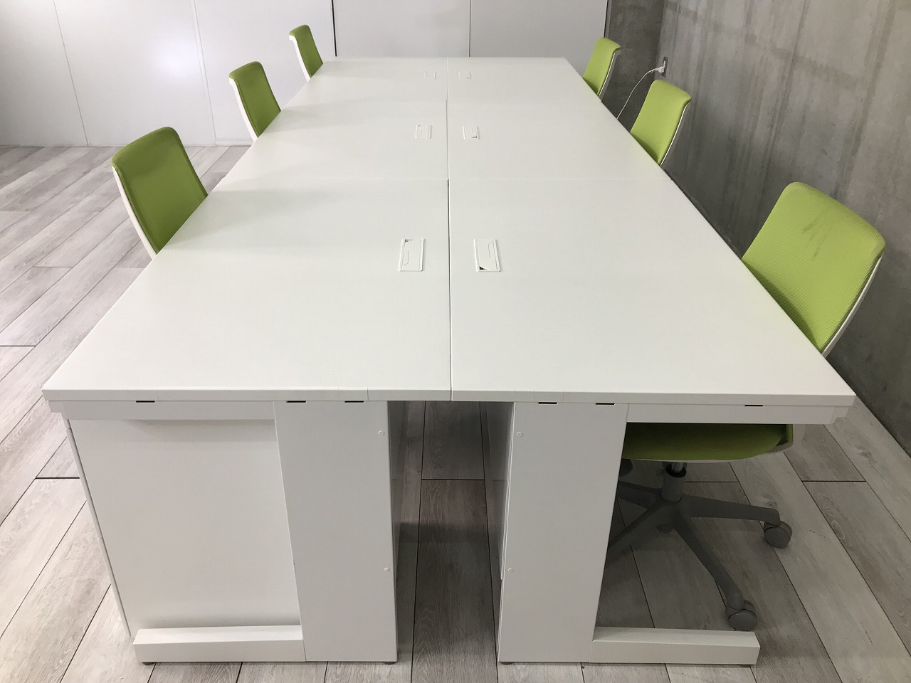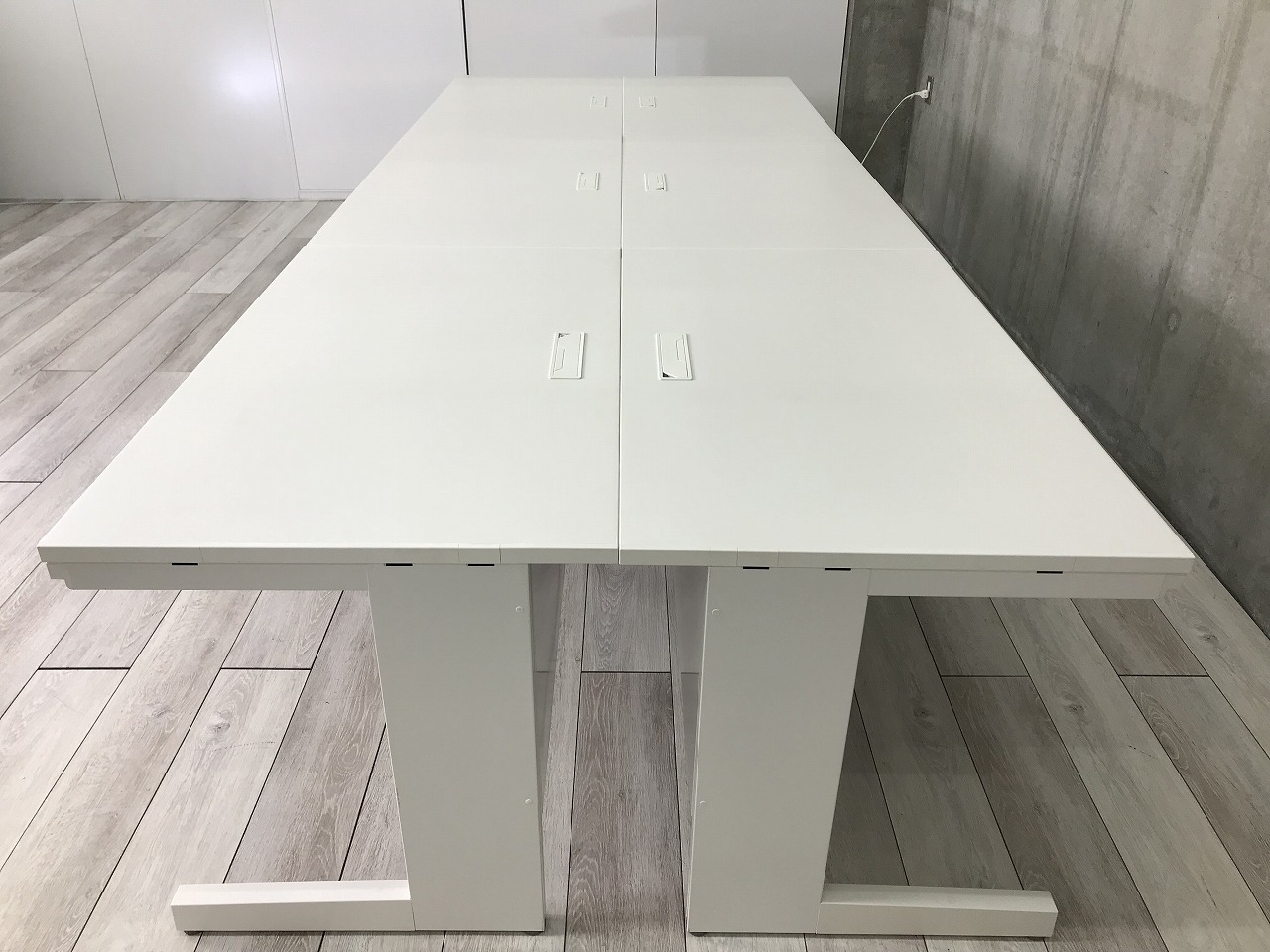 - 机の角がシャープなので、隣り合うデスクがフラットにつながります。すっきりとしたデザインです。