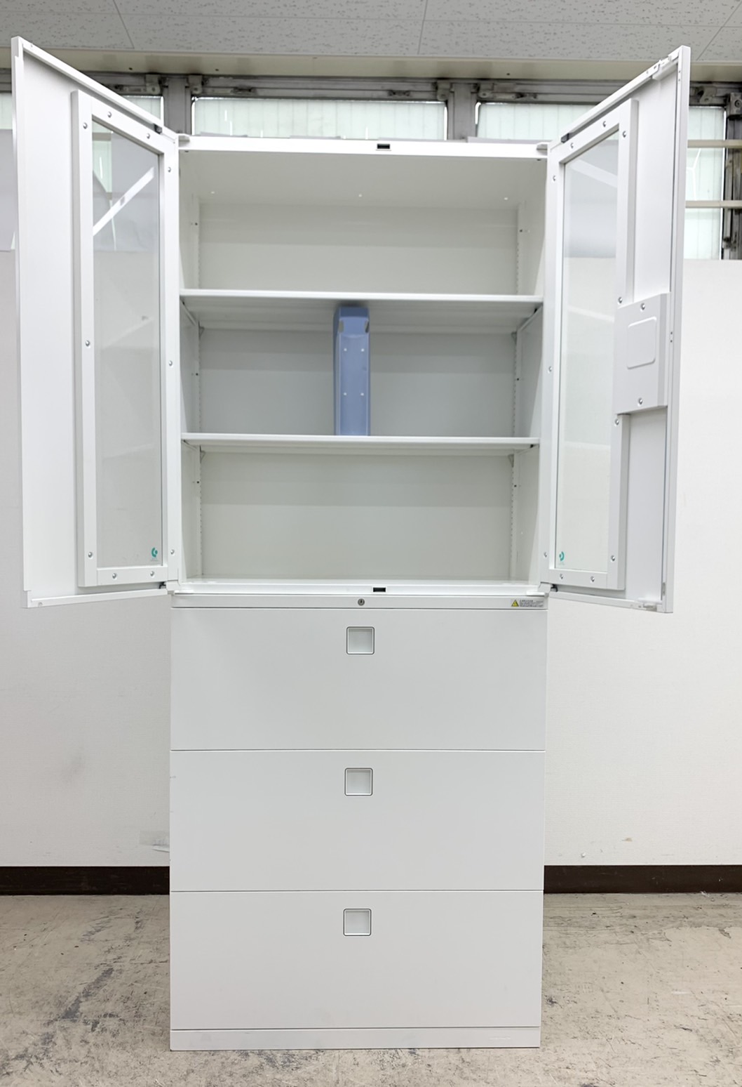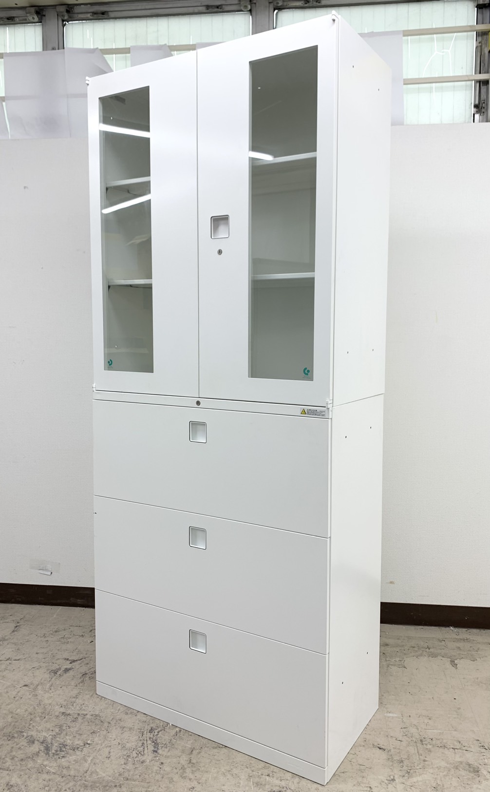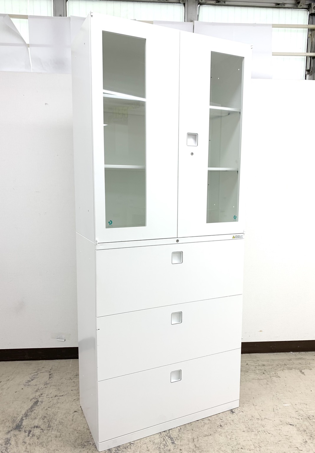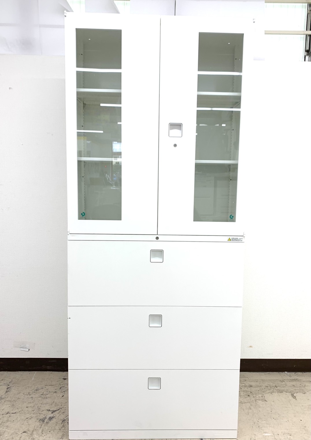 【高さ注意!2300㎜】【1台限定】希少セット上段ガラス&下段3段書庫仕様※まっしろホワイトカラー◆オカムラ製- 春日部・越谷店