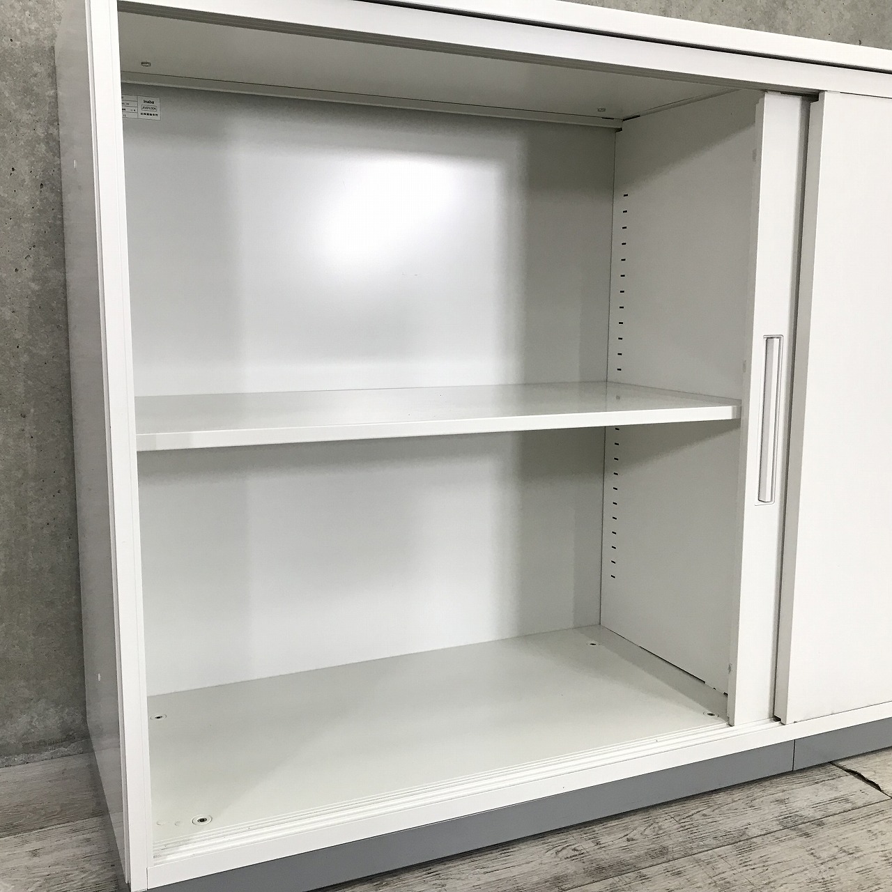【人気の引き違い戸タイプ!取っ手が大きく使い勝手のよい定番キャビネット!】■イナバ(Inaba)製 TFシリーズ 引き違い書庫 ローキャビネット W900×D450㎜ ■ホワイト /ベース:グレー ■シリンダー錠 ※日焼けあり