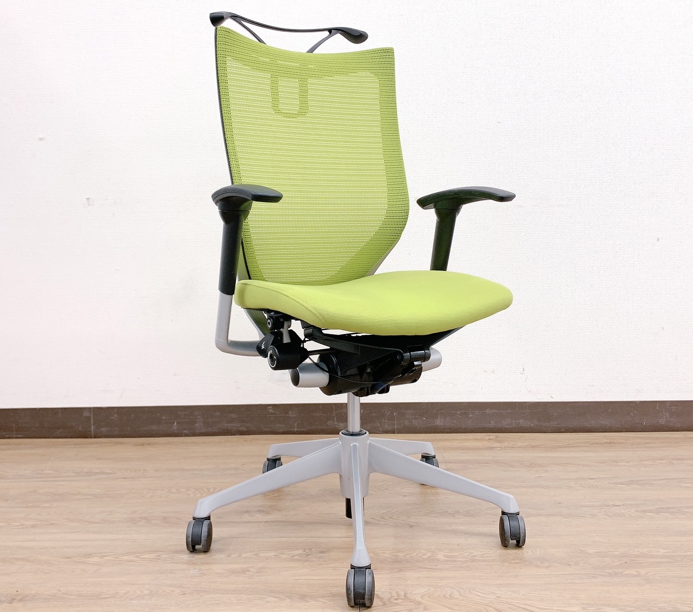 【2015年製状態Aランク】超・さわやかグリーンカラー!状態極上バロン(Baron)※アジャストアーム=可動肘掛け仕様◆オカムラ製1227【RP】- 埼玉本店