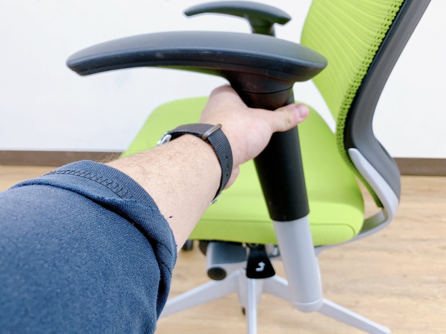 - 肘かけはラチェット式で軽く持ち上げるだけで高さ調整(100mm)が可能です。
