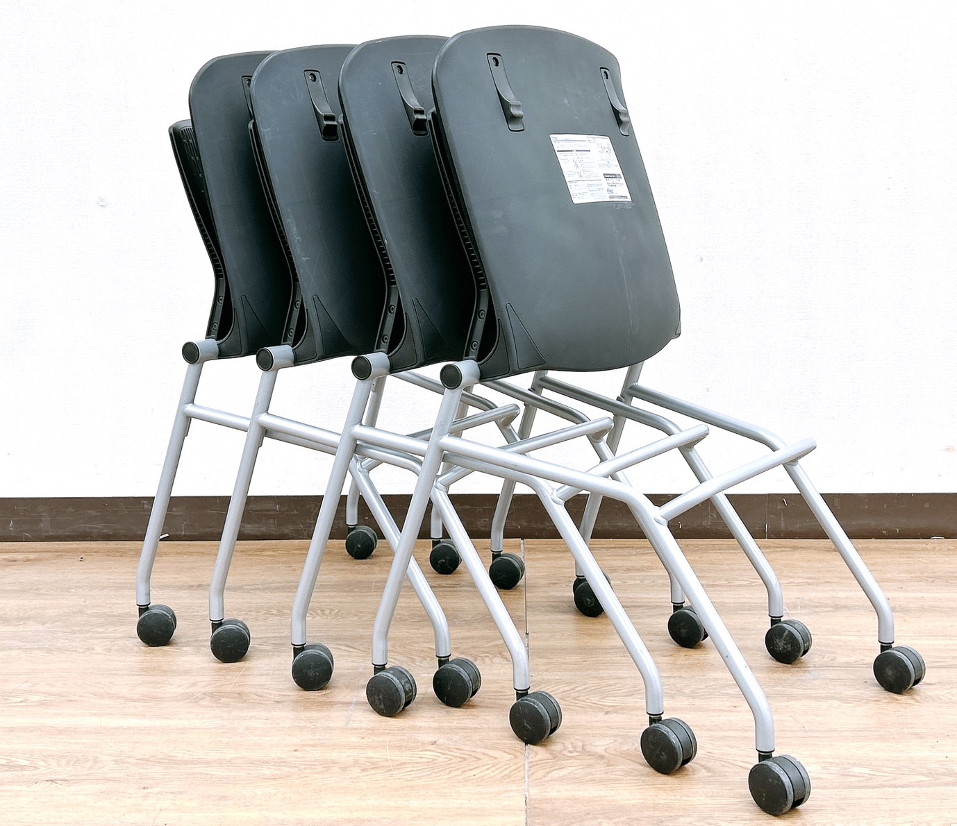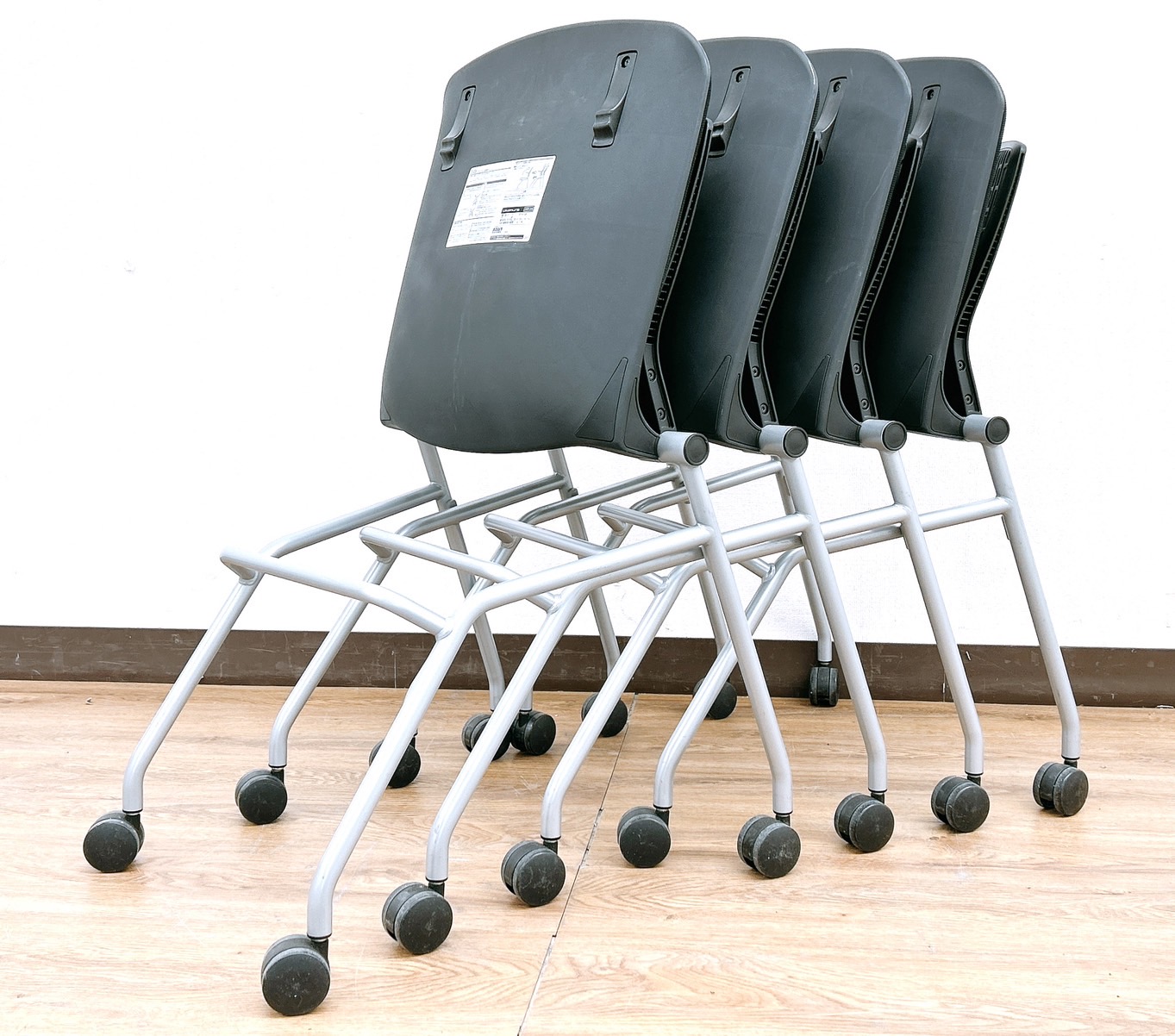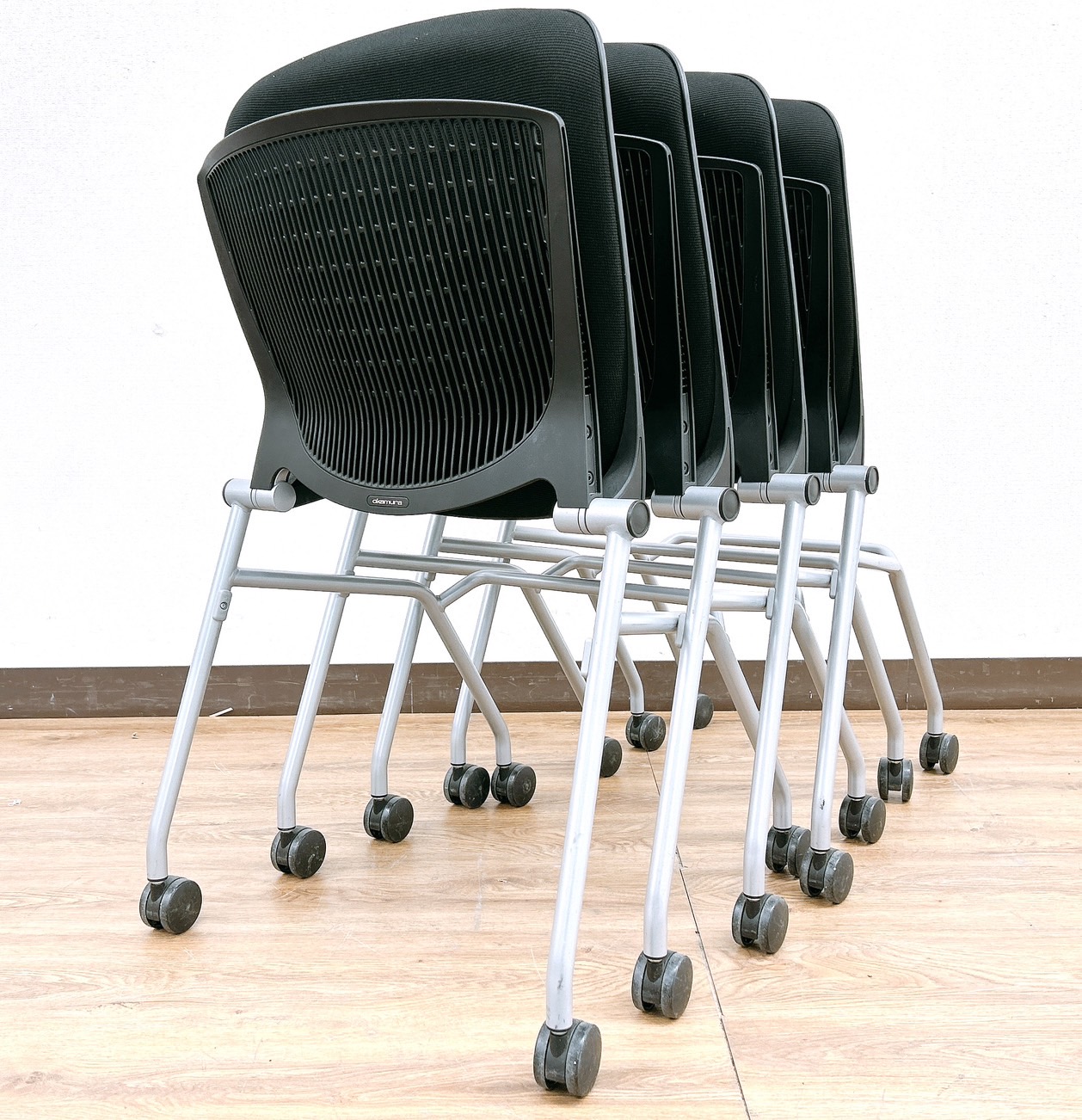【4脚セットが3セット入荷】お買い得4脚セット⇒大人気ネスティングタイプミーティングチェア⇒グラータ(Grata)※ブラックカラー・キャスター付き◆オカムラ製【RP】- 埼玉本店