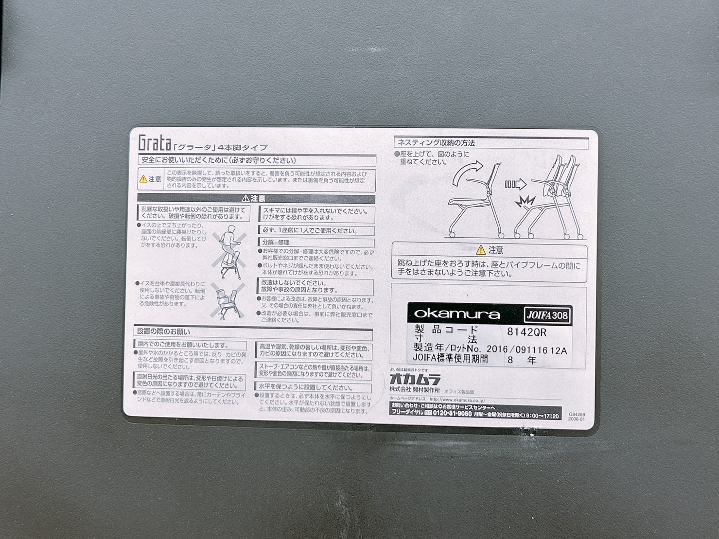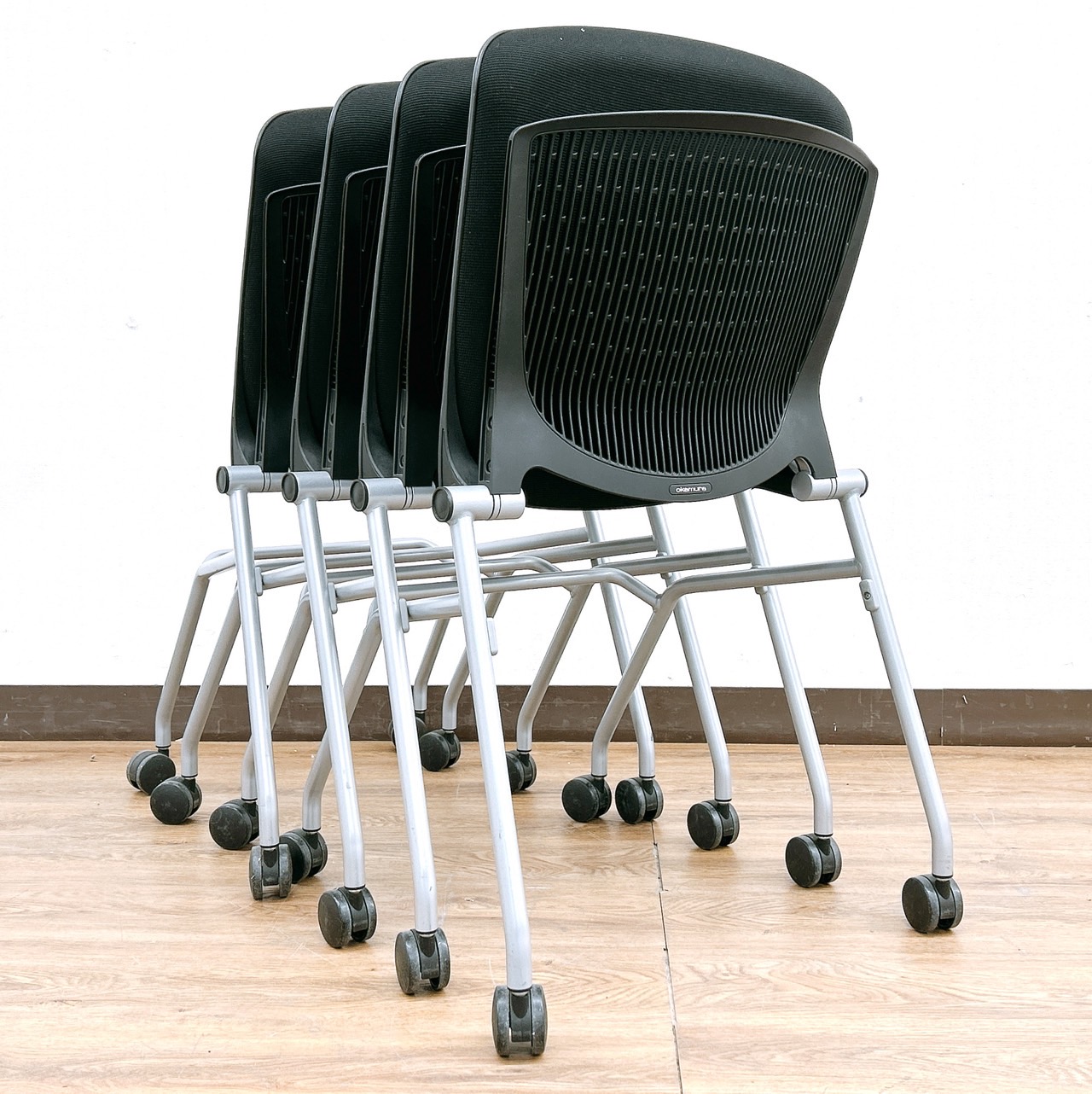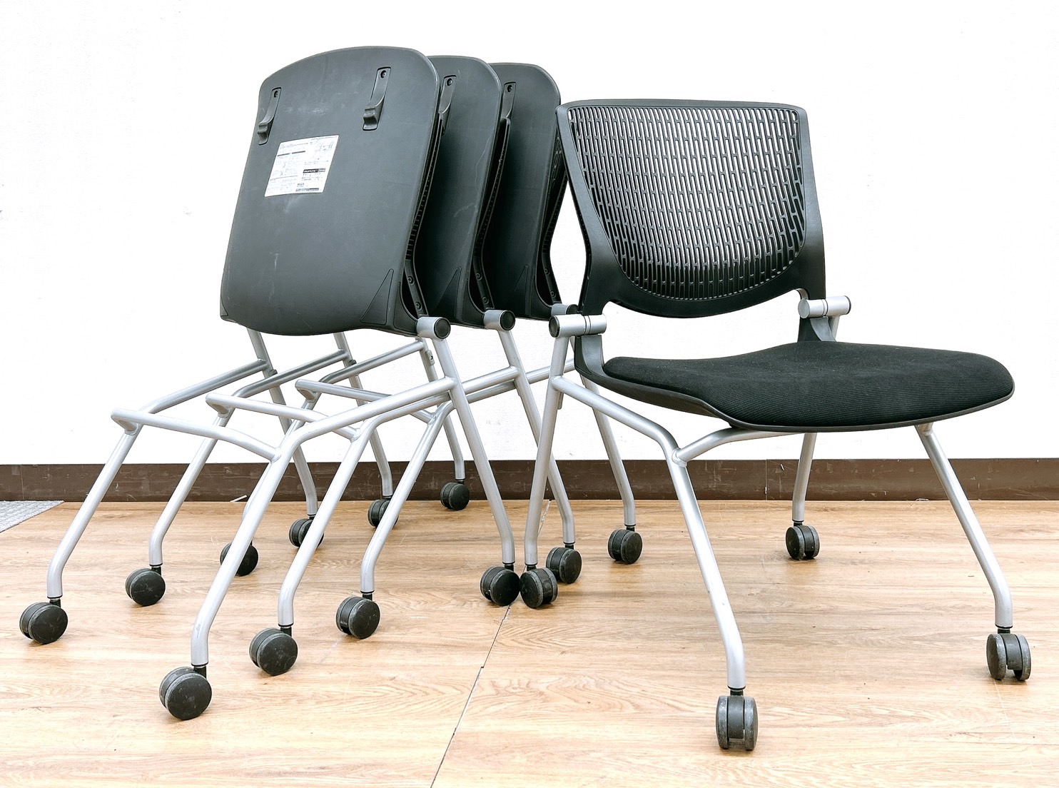 【4脚セットが3セット入荷】お買い得4脚セット⇒大人気ネスティングタイプミーティングチェア⇒グラータ(Grata)※ブラックカラー・キャスター付き◆オカムラ製【RP】- 埼玉本店