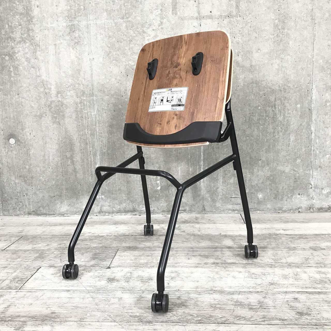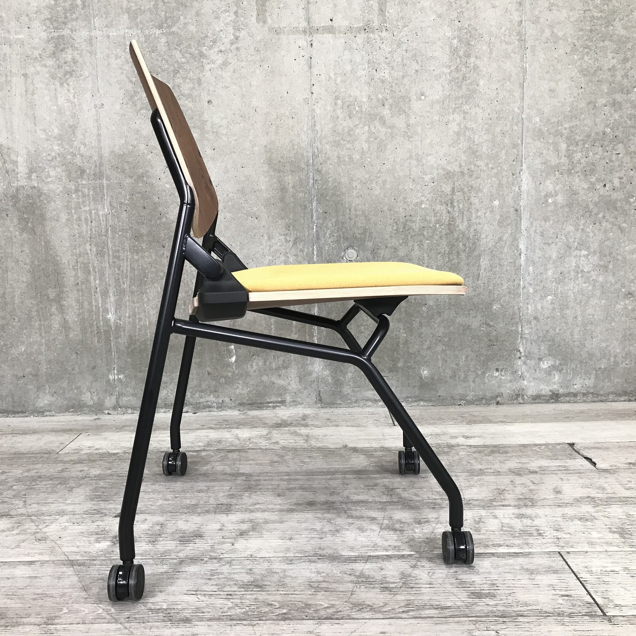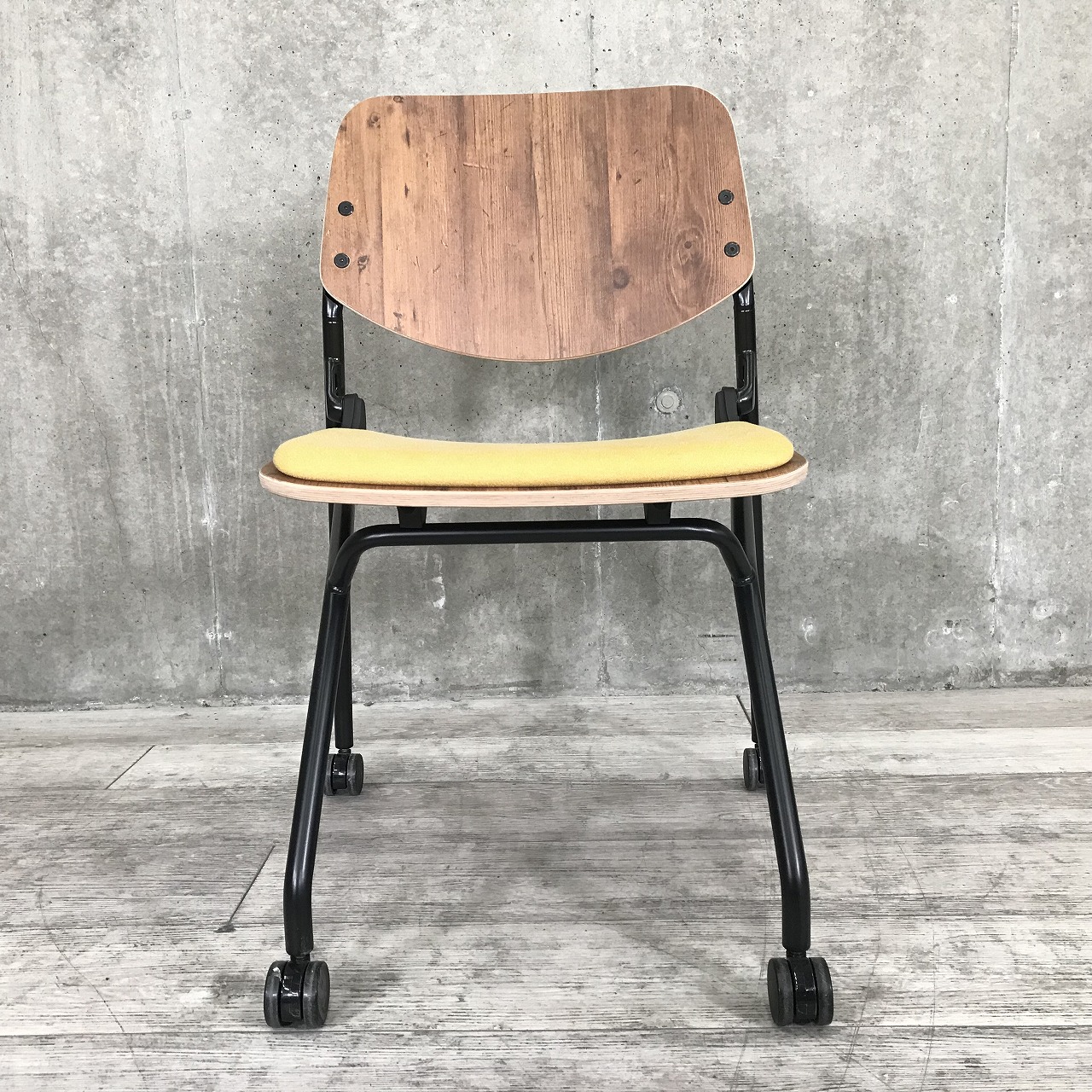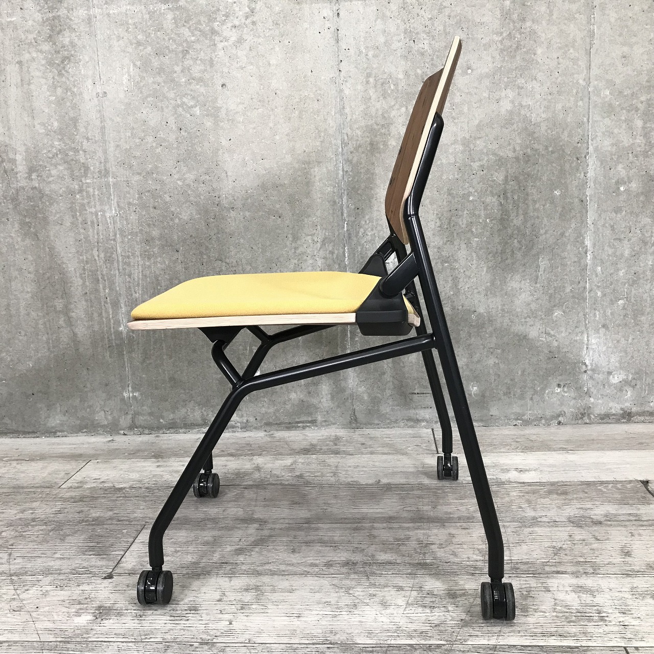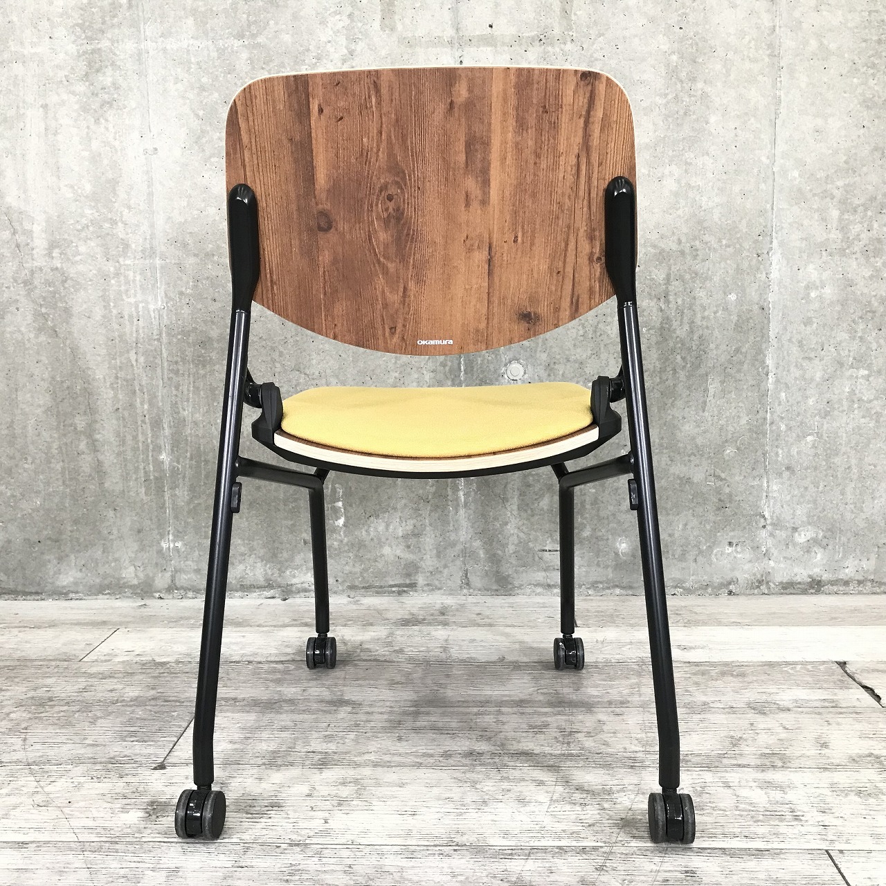 【2021年製】ブラックフレーム×ウッド背面スタッキング/オカムラ/ライブス/イエロー座面- 在庫数
