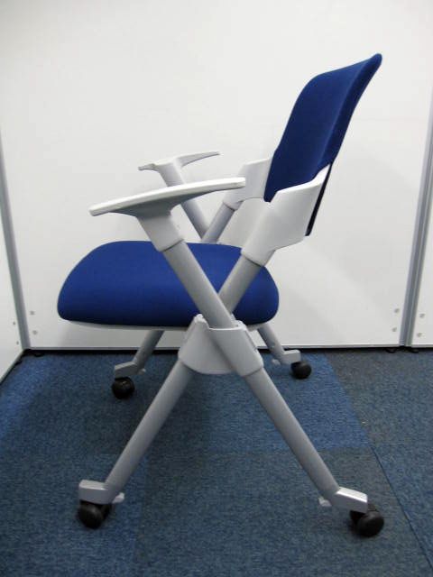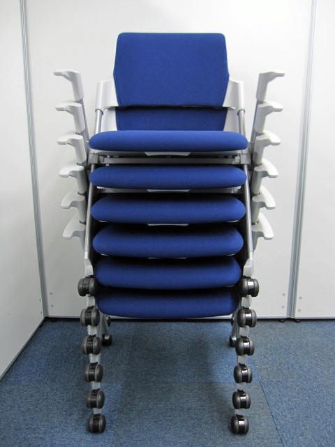 【縦にも横にも重ねられる!】■コクヨ製 アンフィシリーズ スタッキングチェア ■ブルー 肘掛け付き- 川崎店