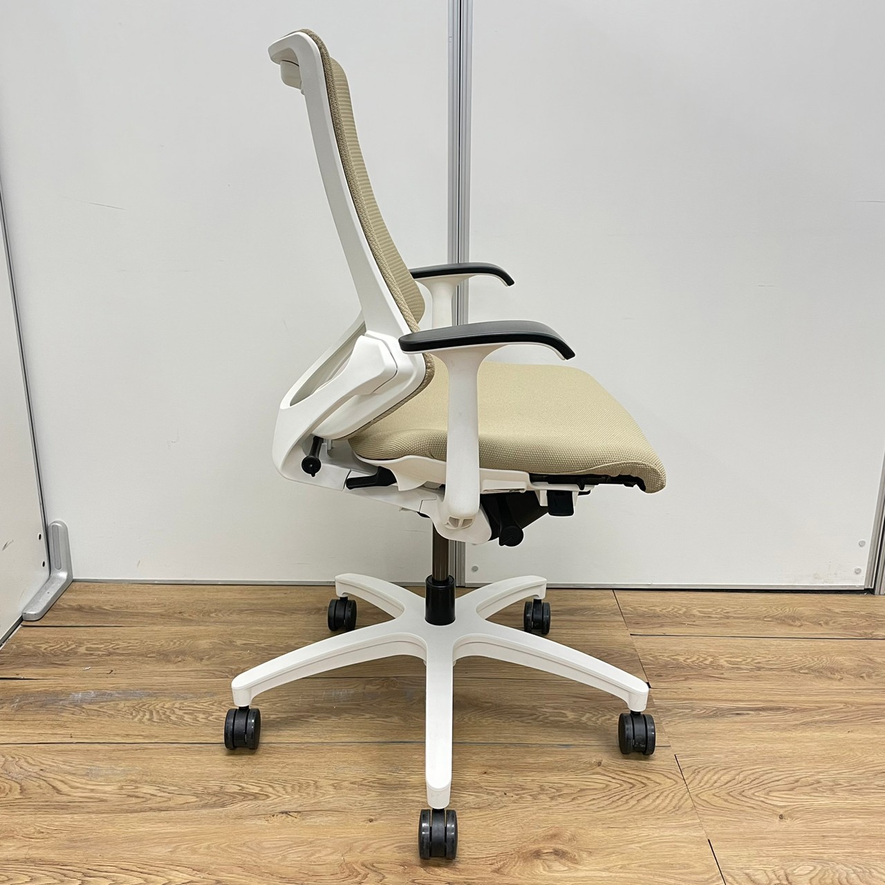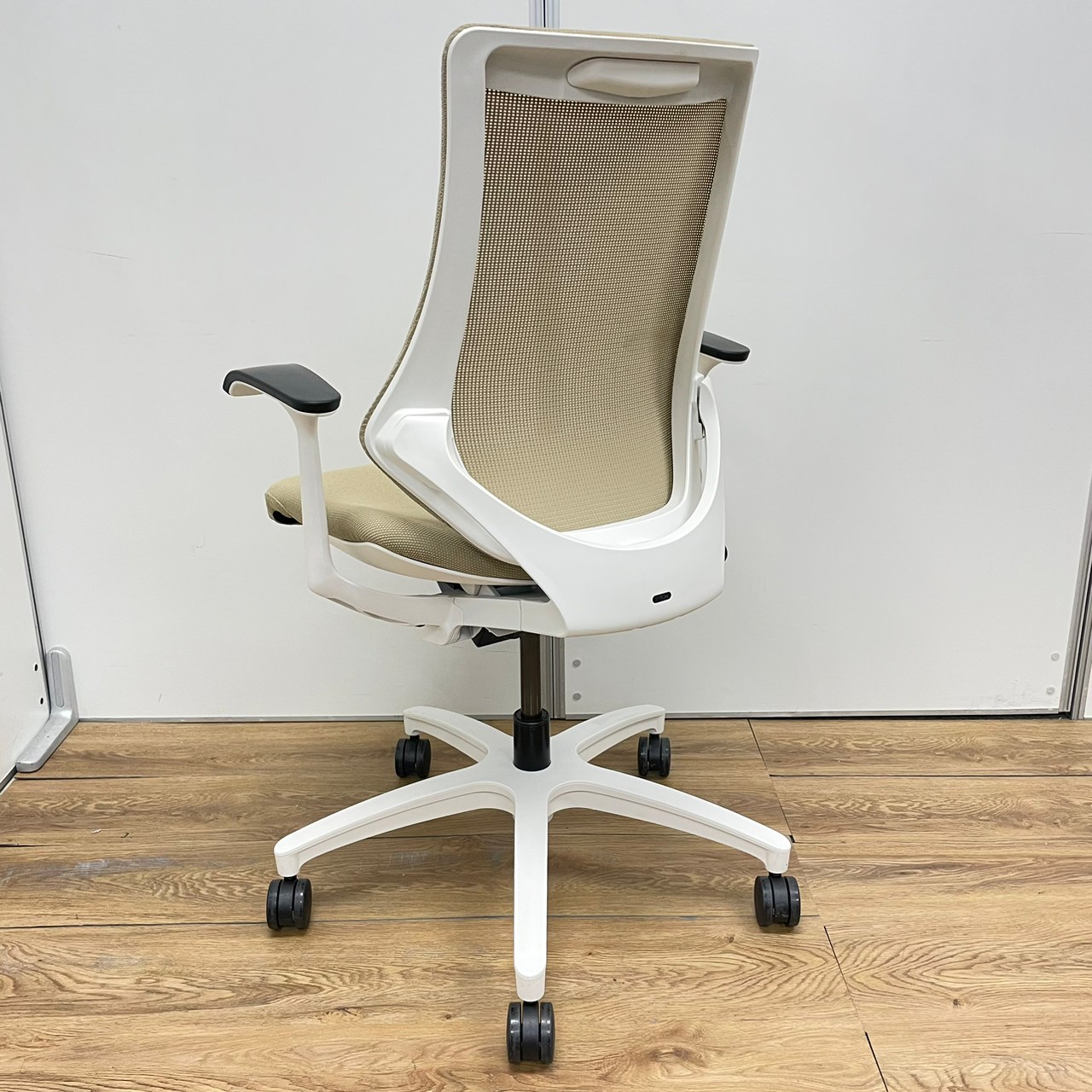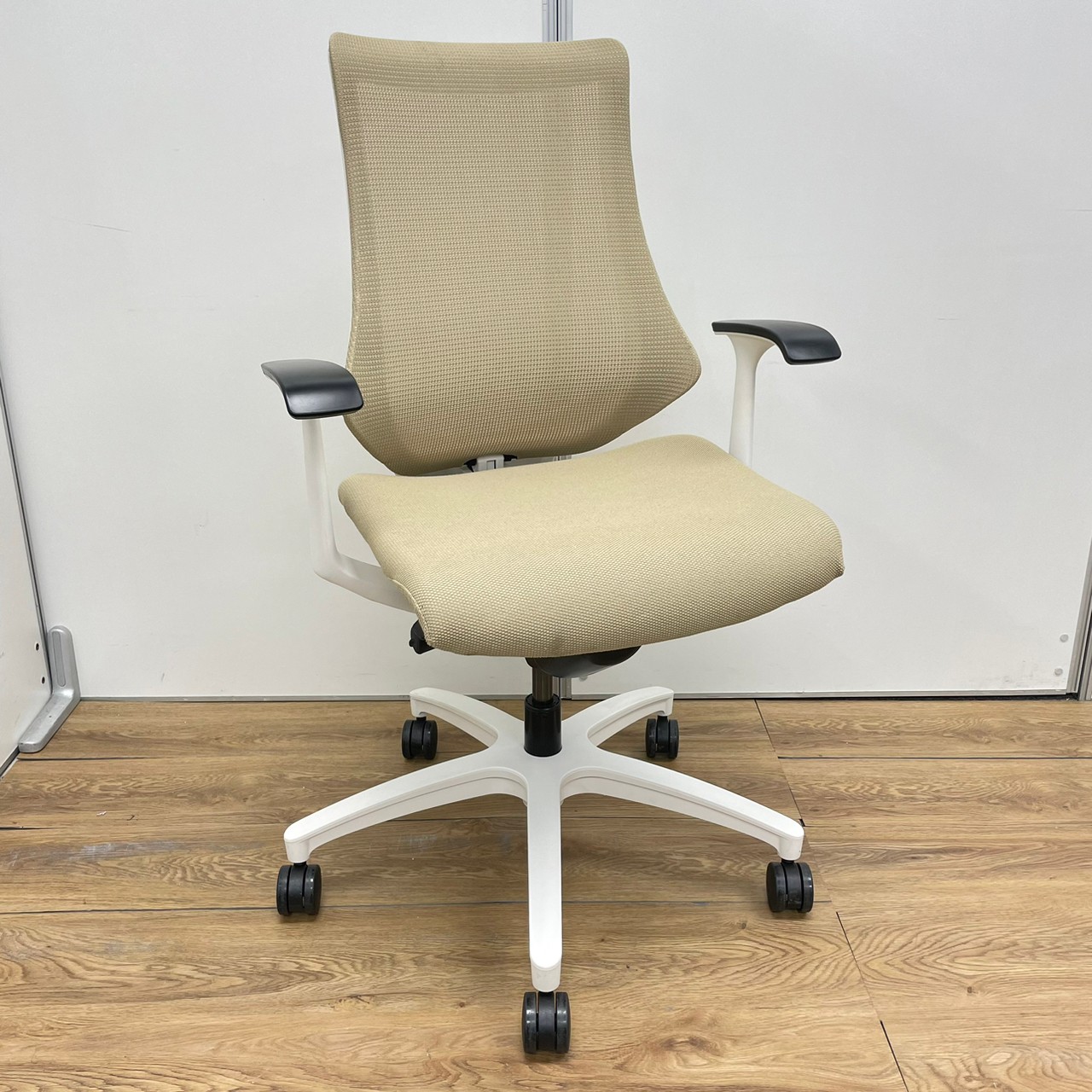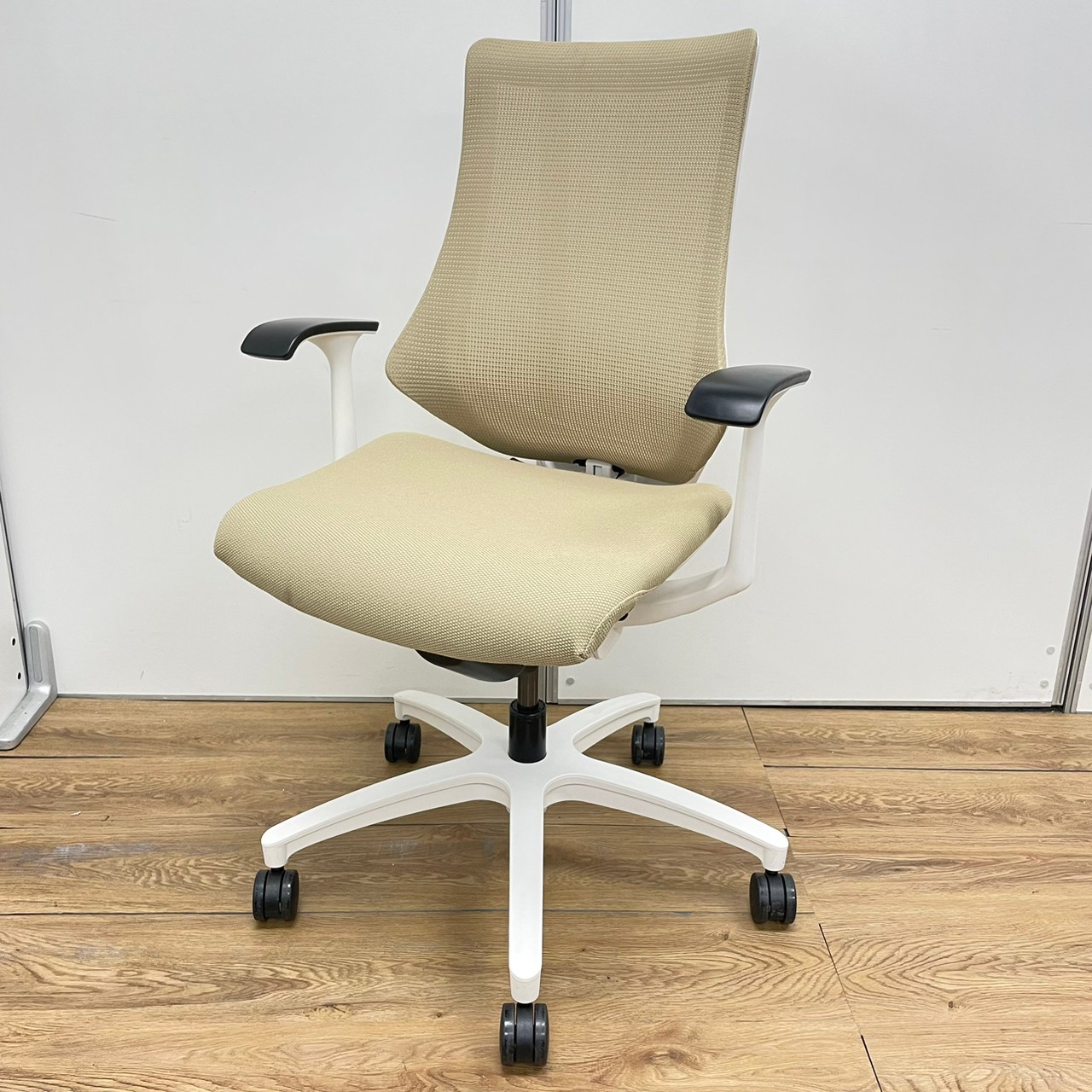カラーは、生地サンドイエロー×フレームホワイトでオフィスだけでなく、ご自宅でも合うでしょう!!