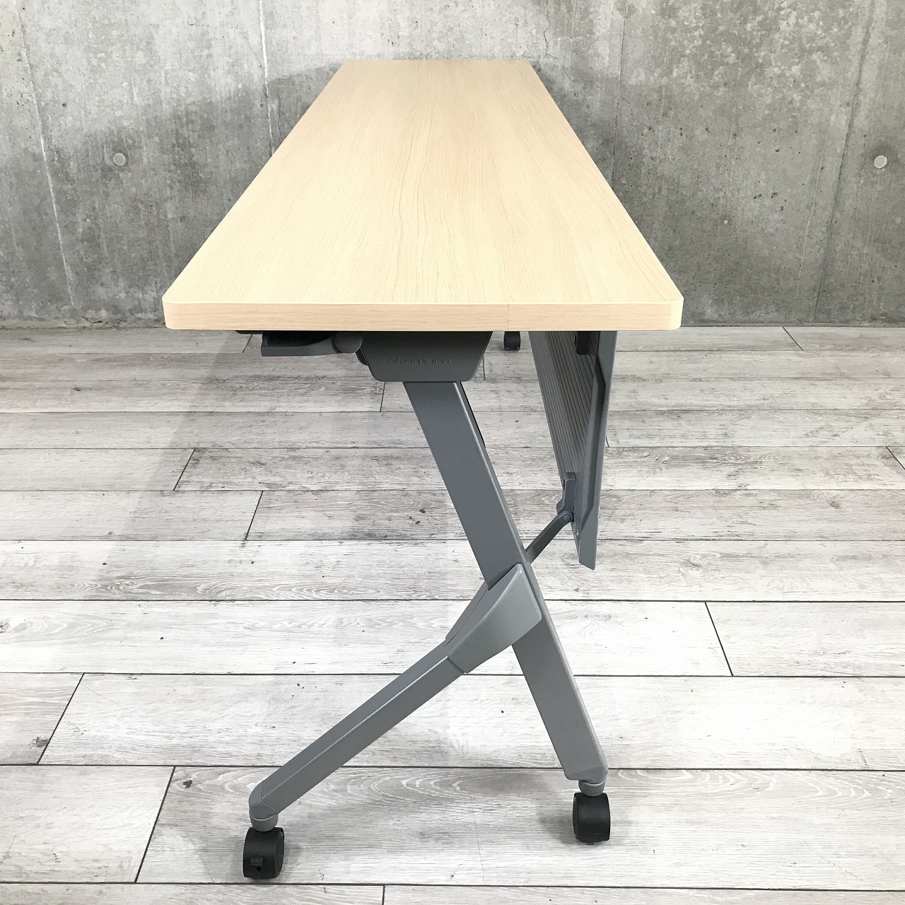 【W1500の折り畳みテーブルが入荷!】◆オカムラ/フラプター ナチュラル 木目 サイドスタックテーブル 収納 中古 博多 天神 九州最大級 オフィスバスターズ