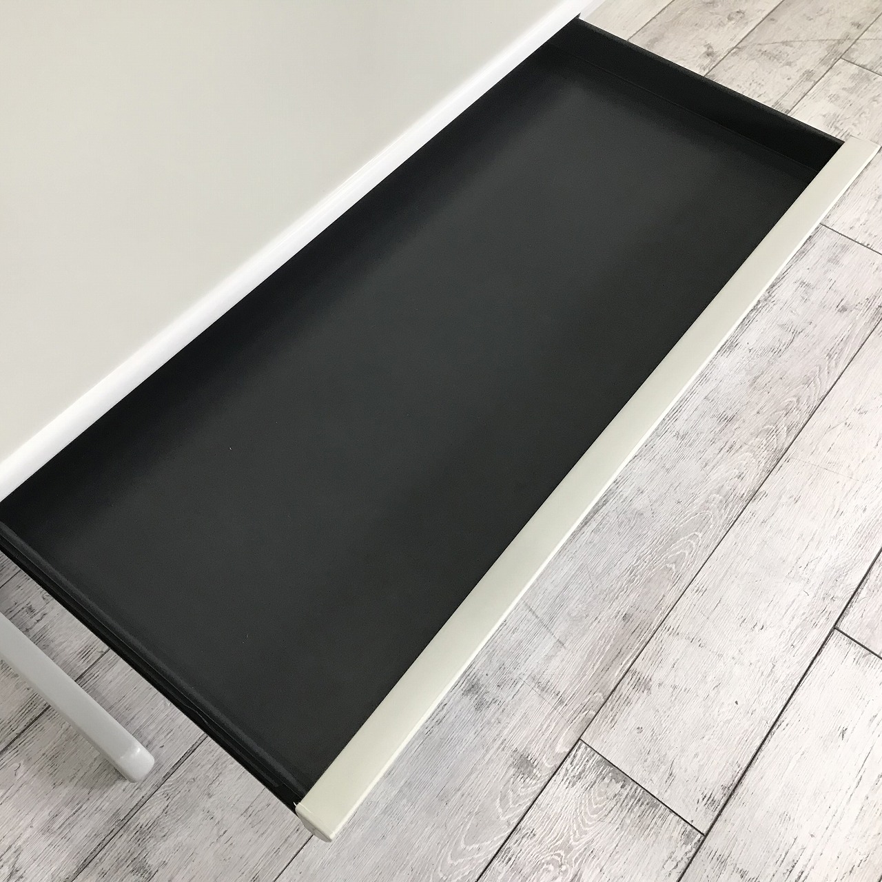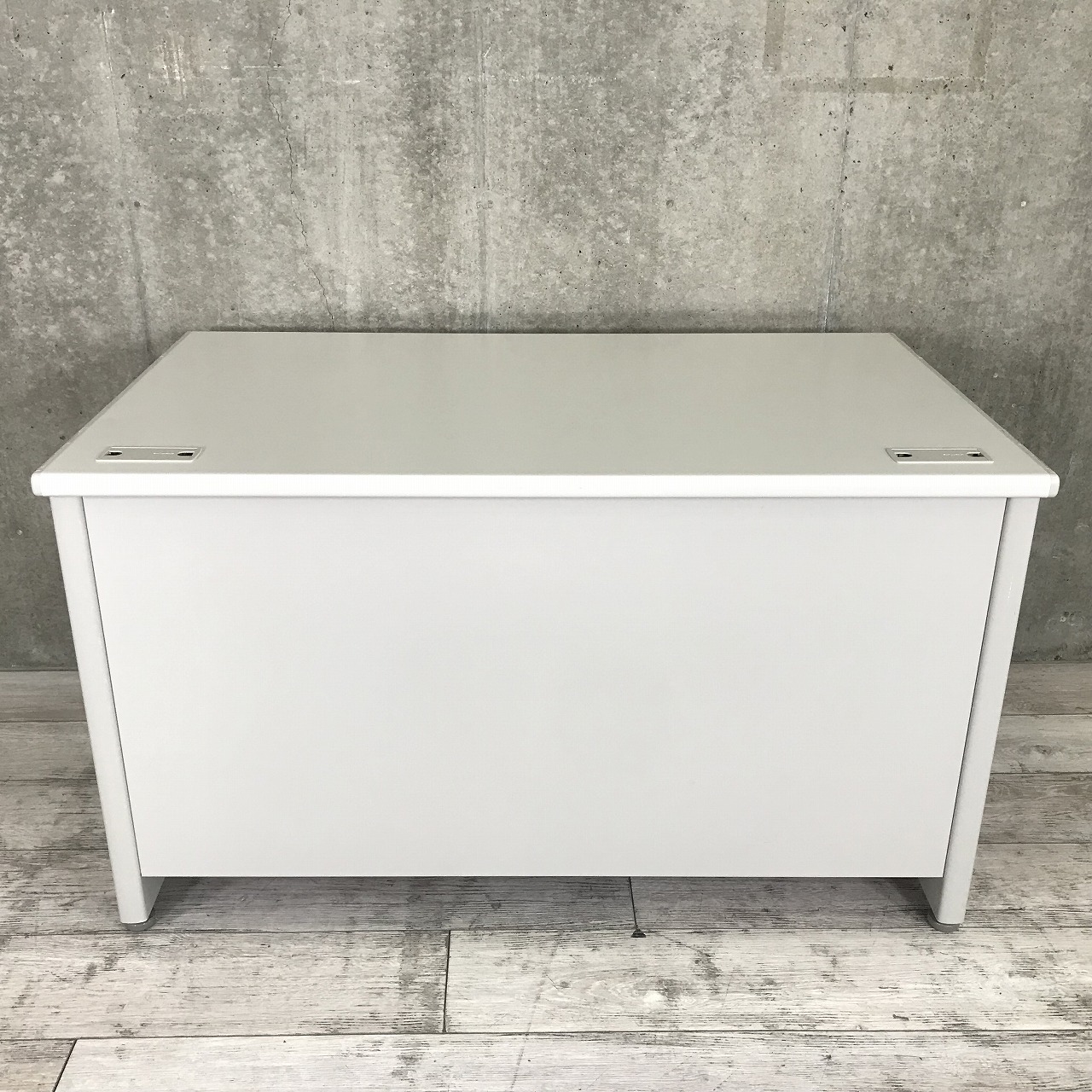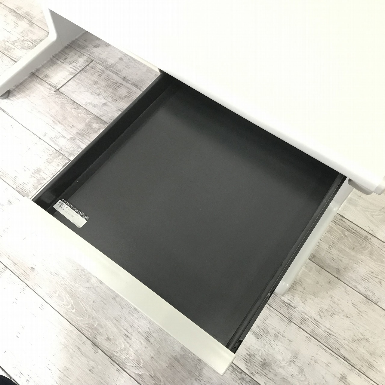 - 袖机のワゴンは、最下段がロング引出しになっており、従来より収納力120%アップ。
