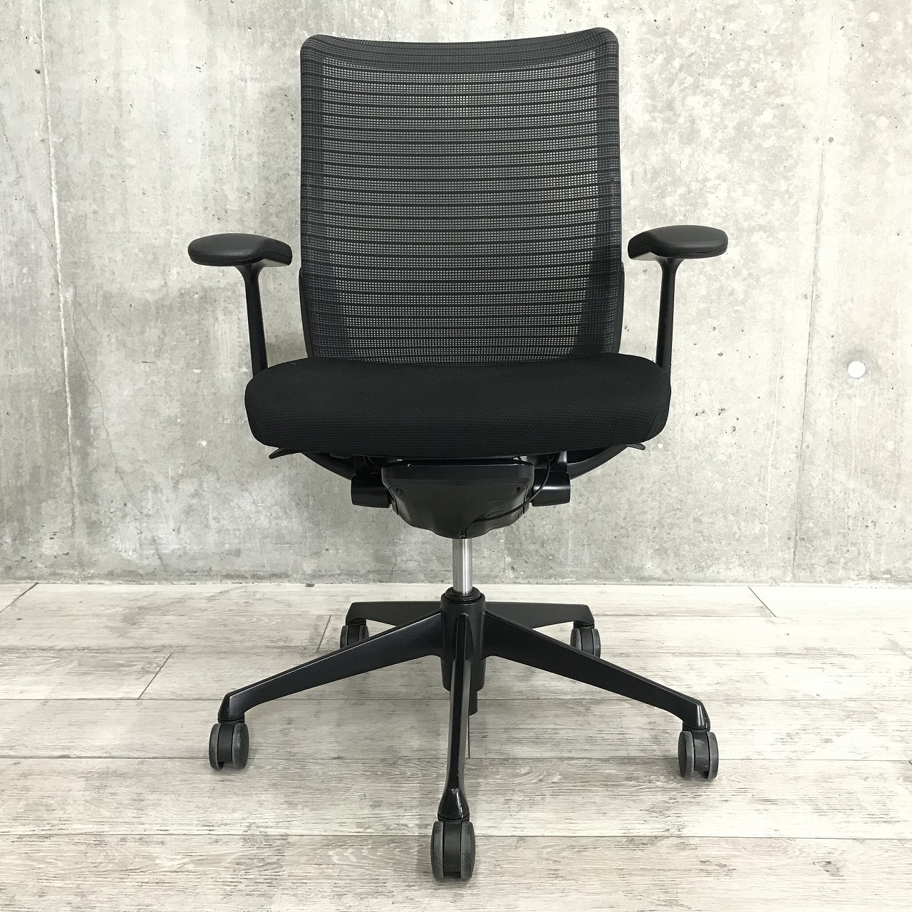 【着座で始まるコーラルものがたり】オカムラ コーラル 肘付 メッシュ ブラック 【固定肘タイプの脚までオールブラック仕様!】〈岐阜・愛知・三重・静岡・福井〉