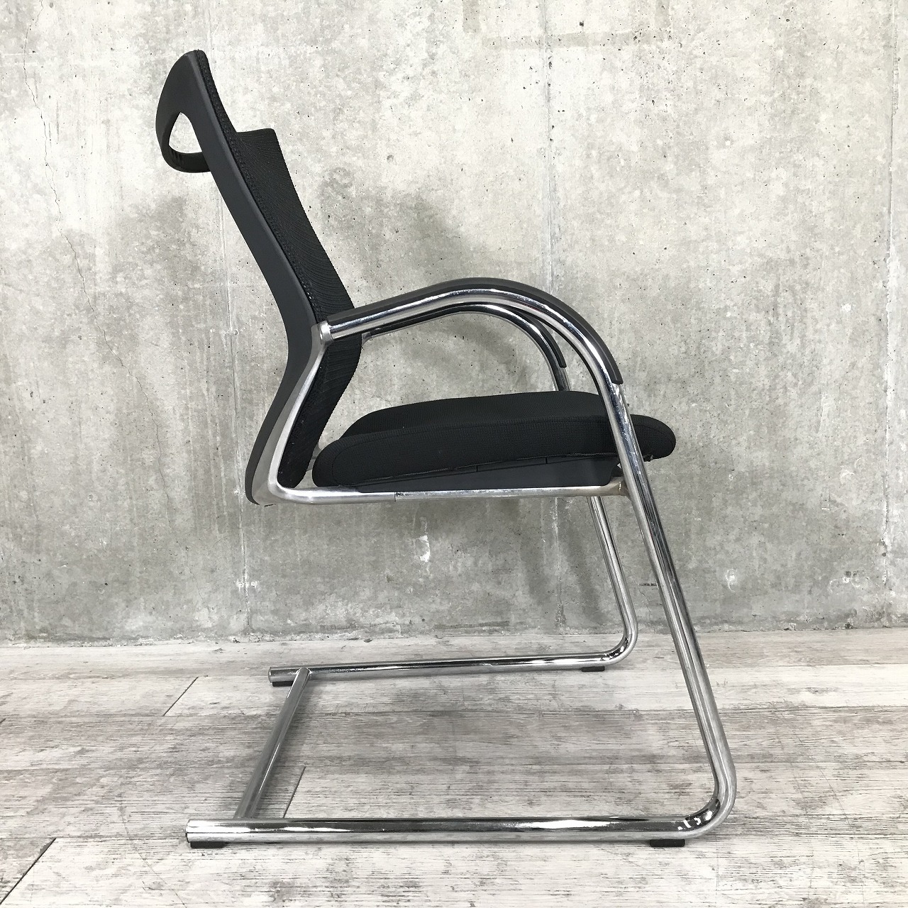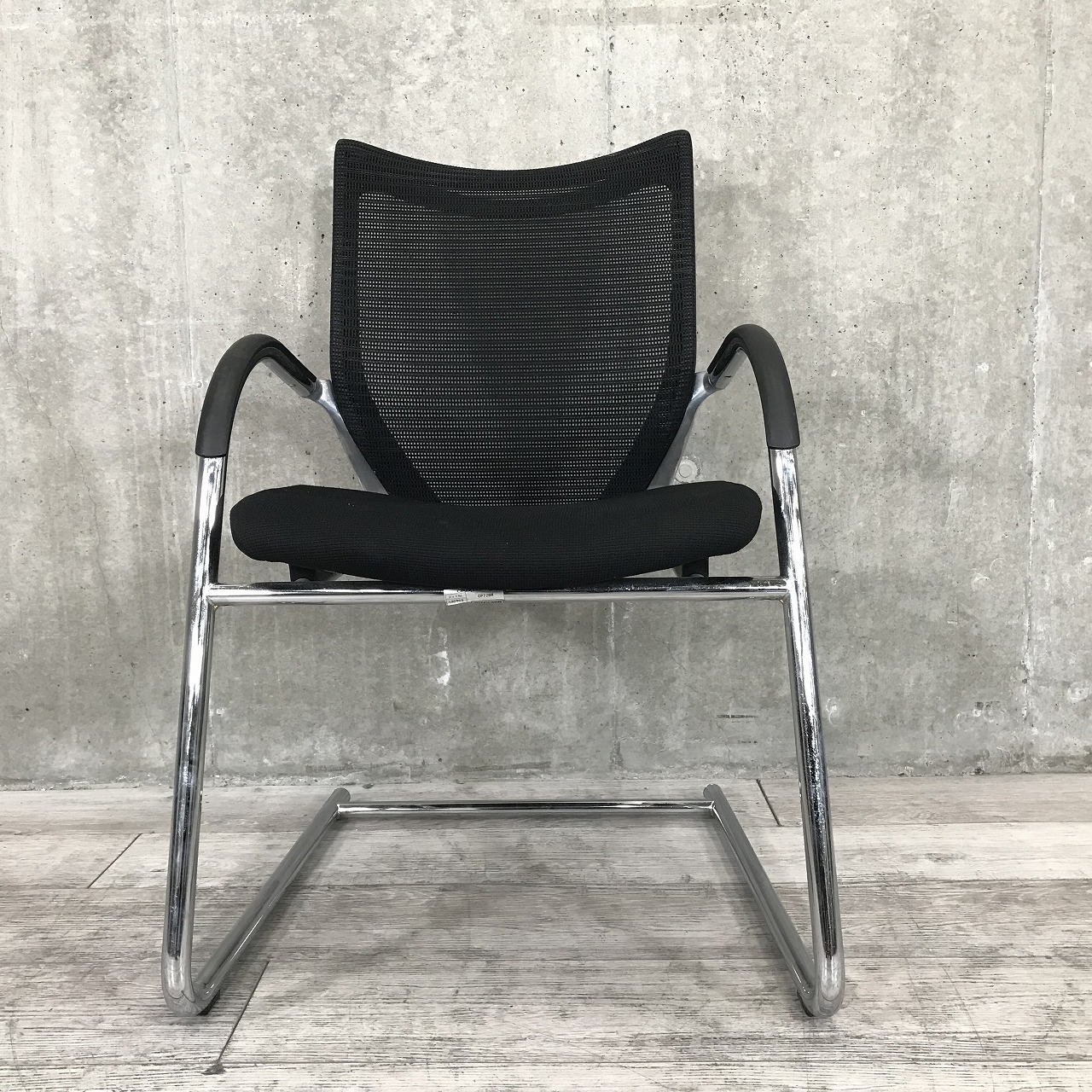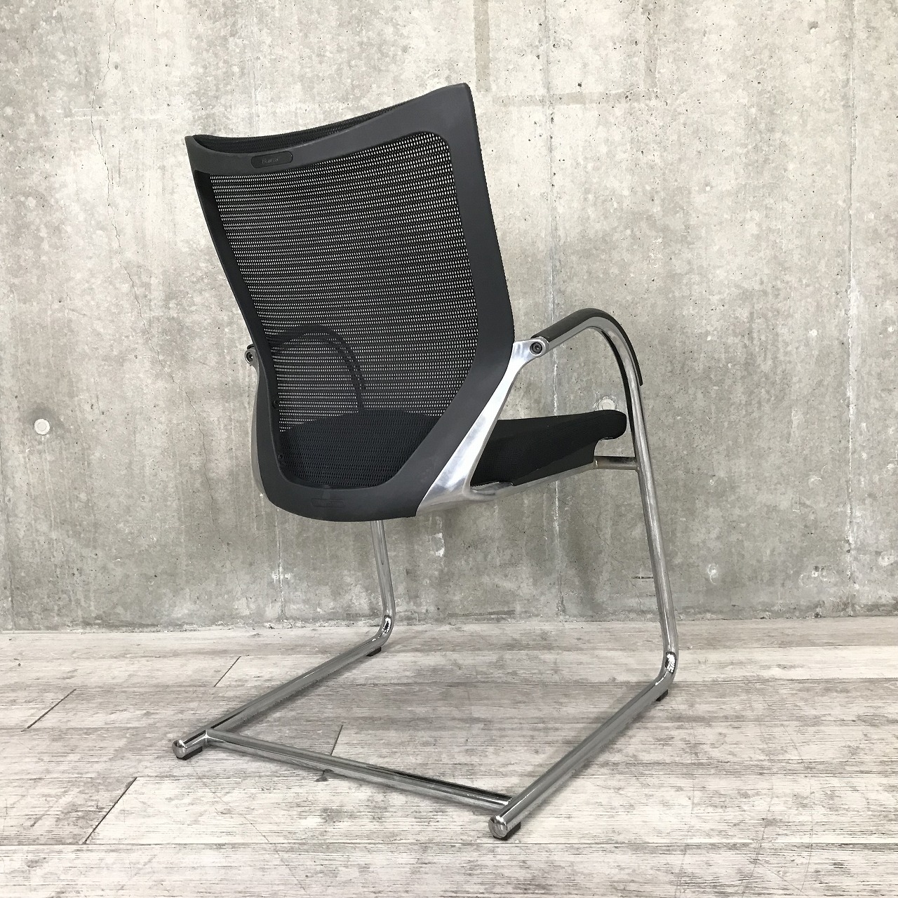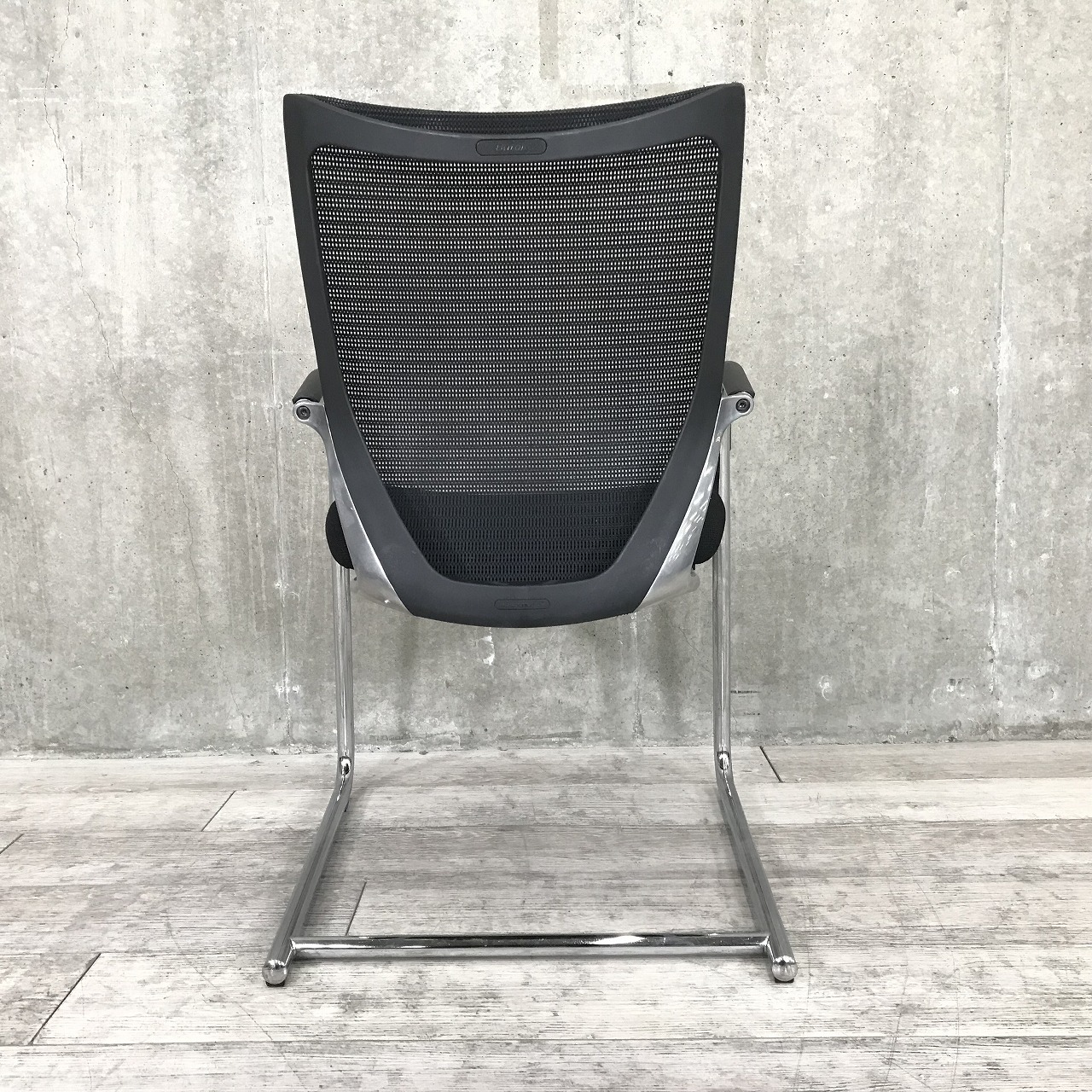 【在庫入替セール】オカムラ バロン ゲストチェア(ミーティングチェア) 背メッシュ×座クッション カンチレバー脚 ブラック×クロームメッキ