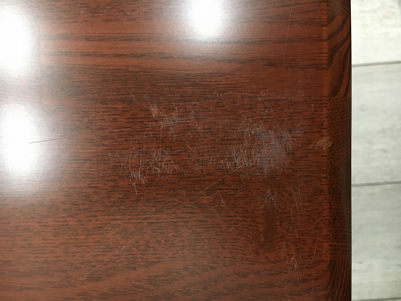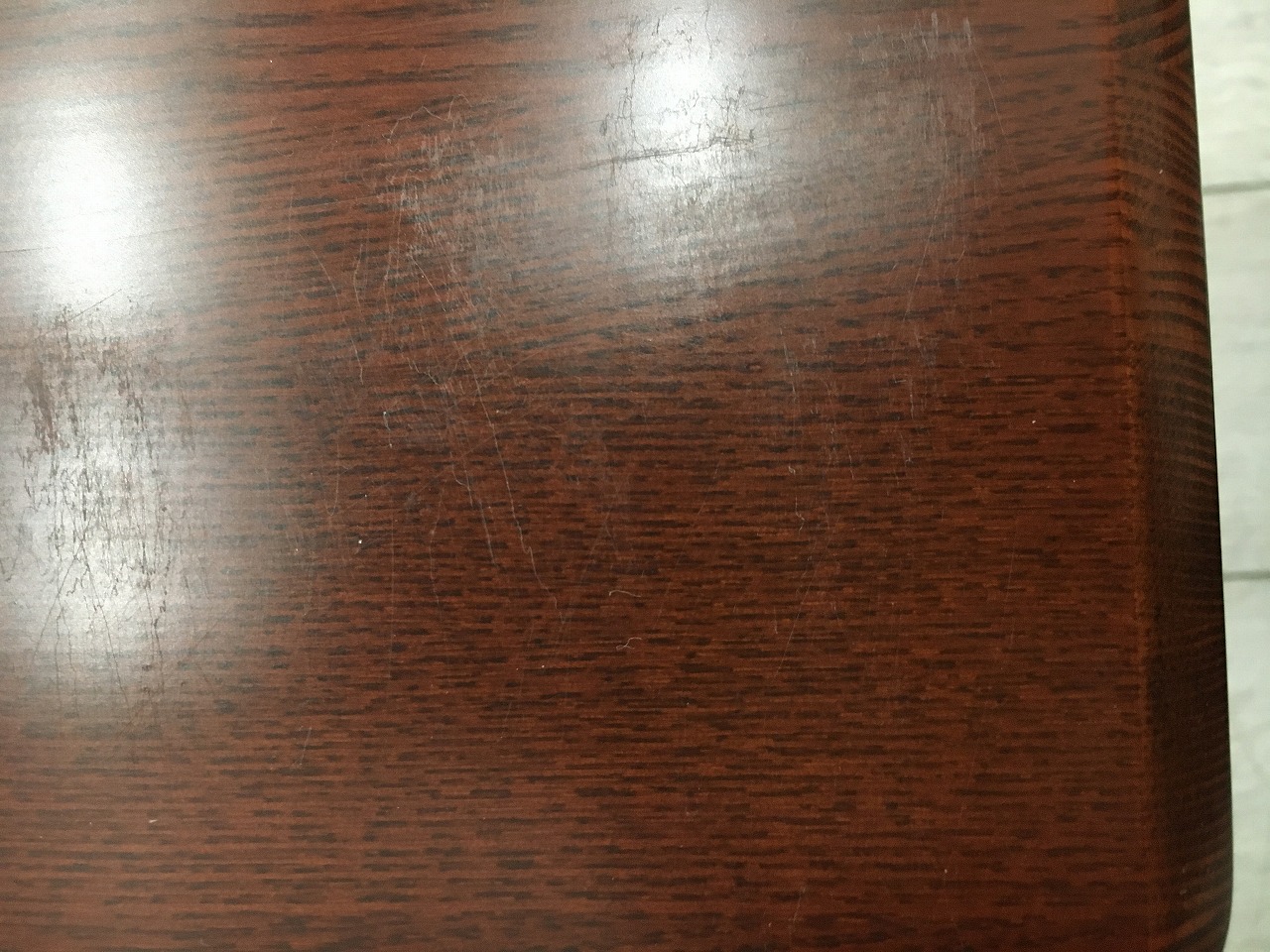 - あり黄ばみ・変色が広い範囲にうっすらある、または濃い黄ばみ・変色が一部ある。(例:三人用ソファ、二人用ソファ、一人用ソファの場合、背もたれ、肘かけ、座面等、 センターテーブルの場合、天板、脚にある。)