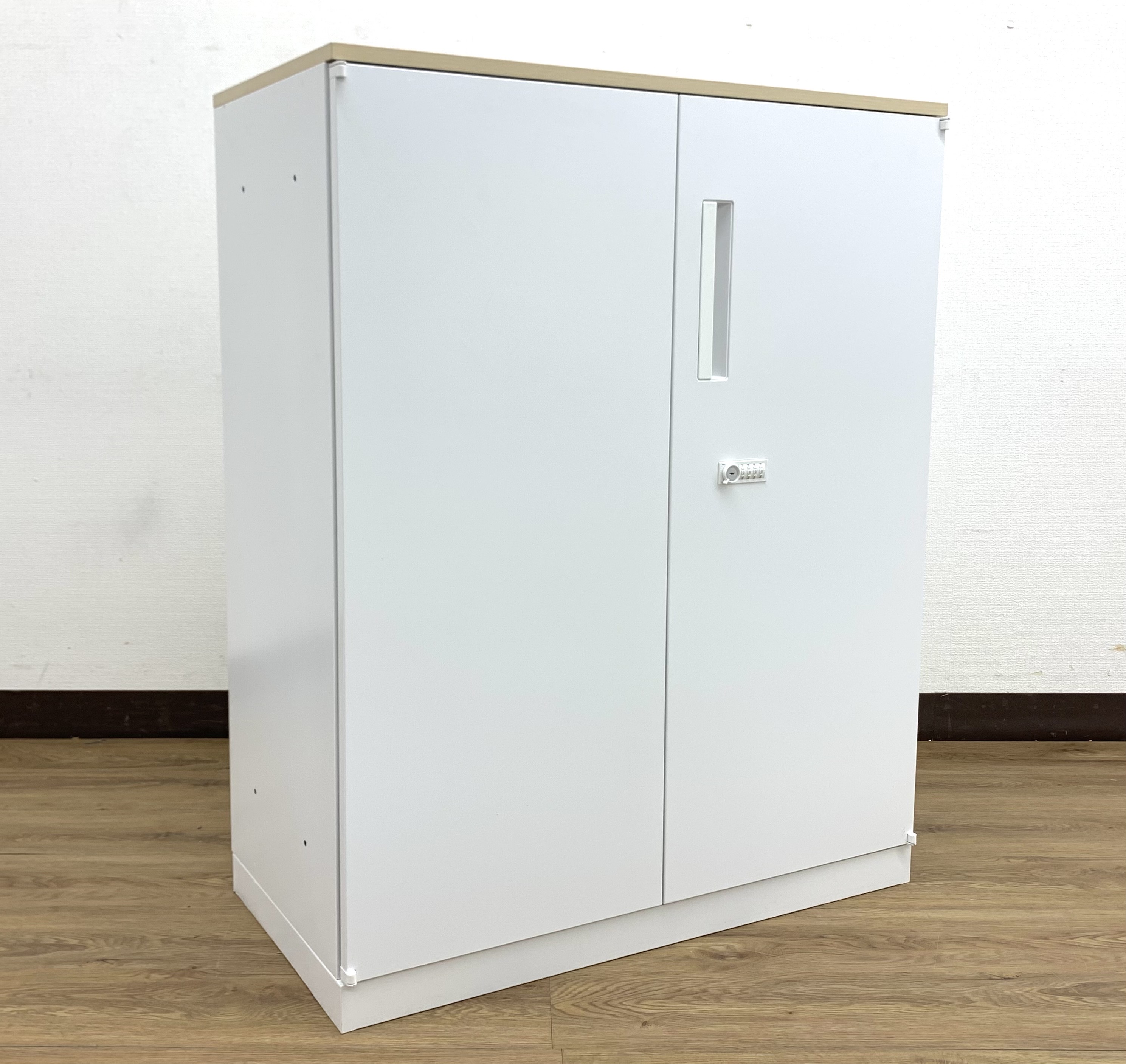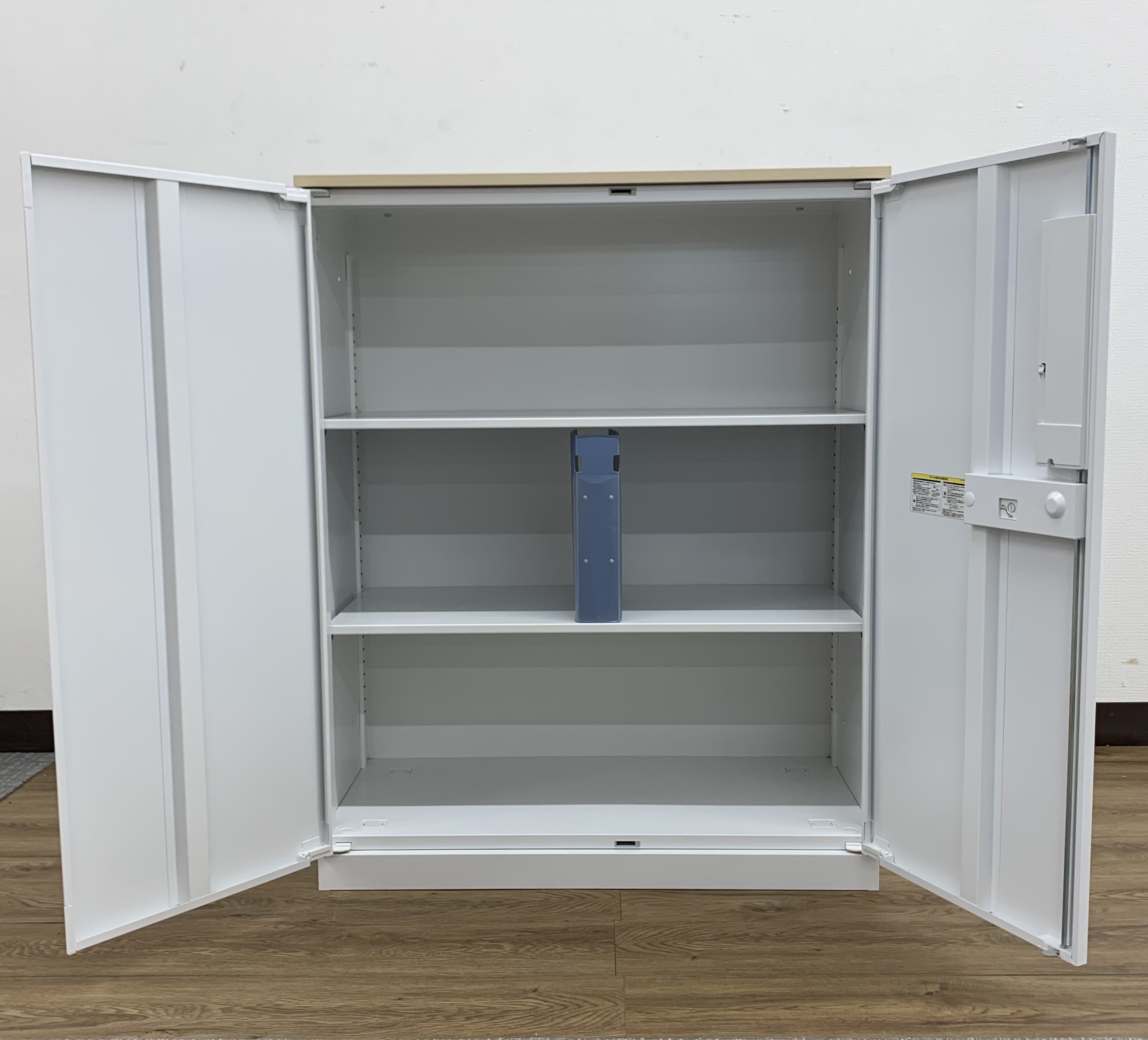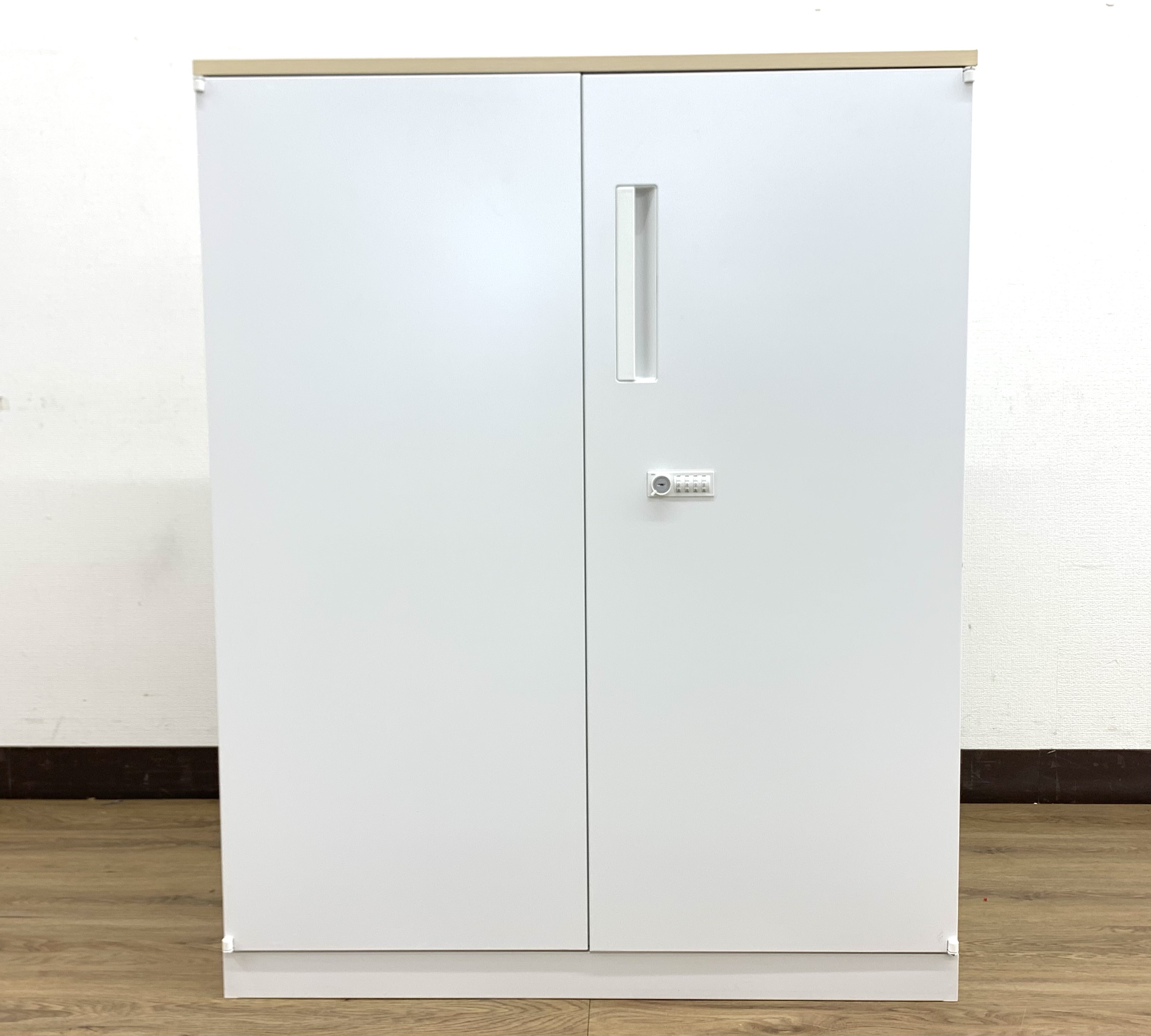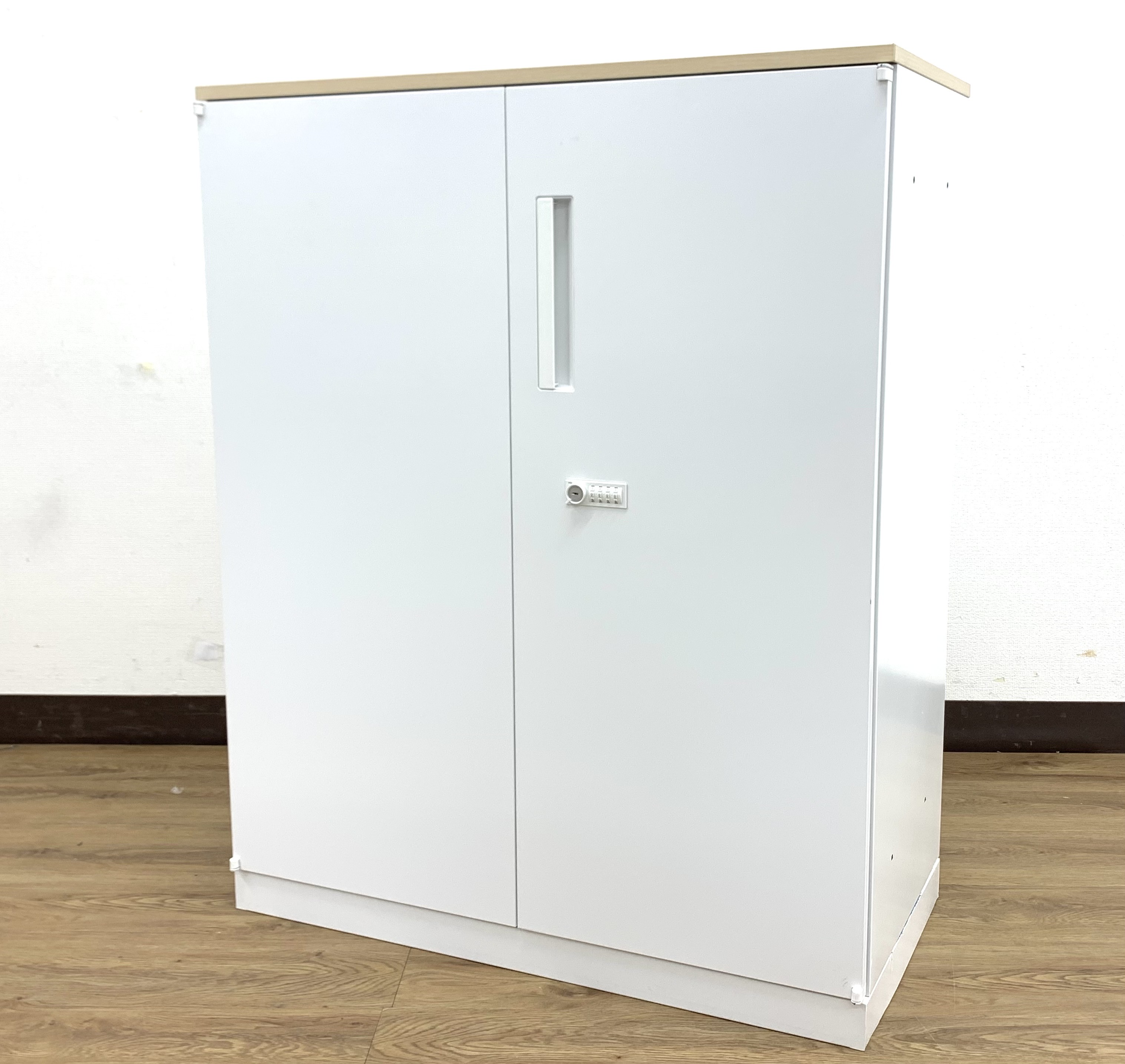 【在庫入替セール品!】人気の観音開きタイプ!取っ手が大きく使い勝手のよい定番キャビネット! ■内田洋行/HSシリーズ/ホワイト 天板ナチュラル