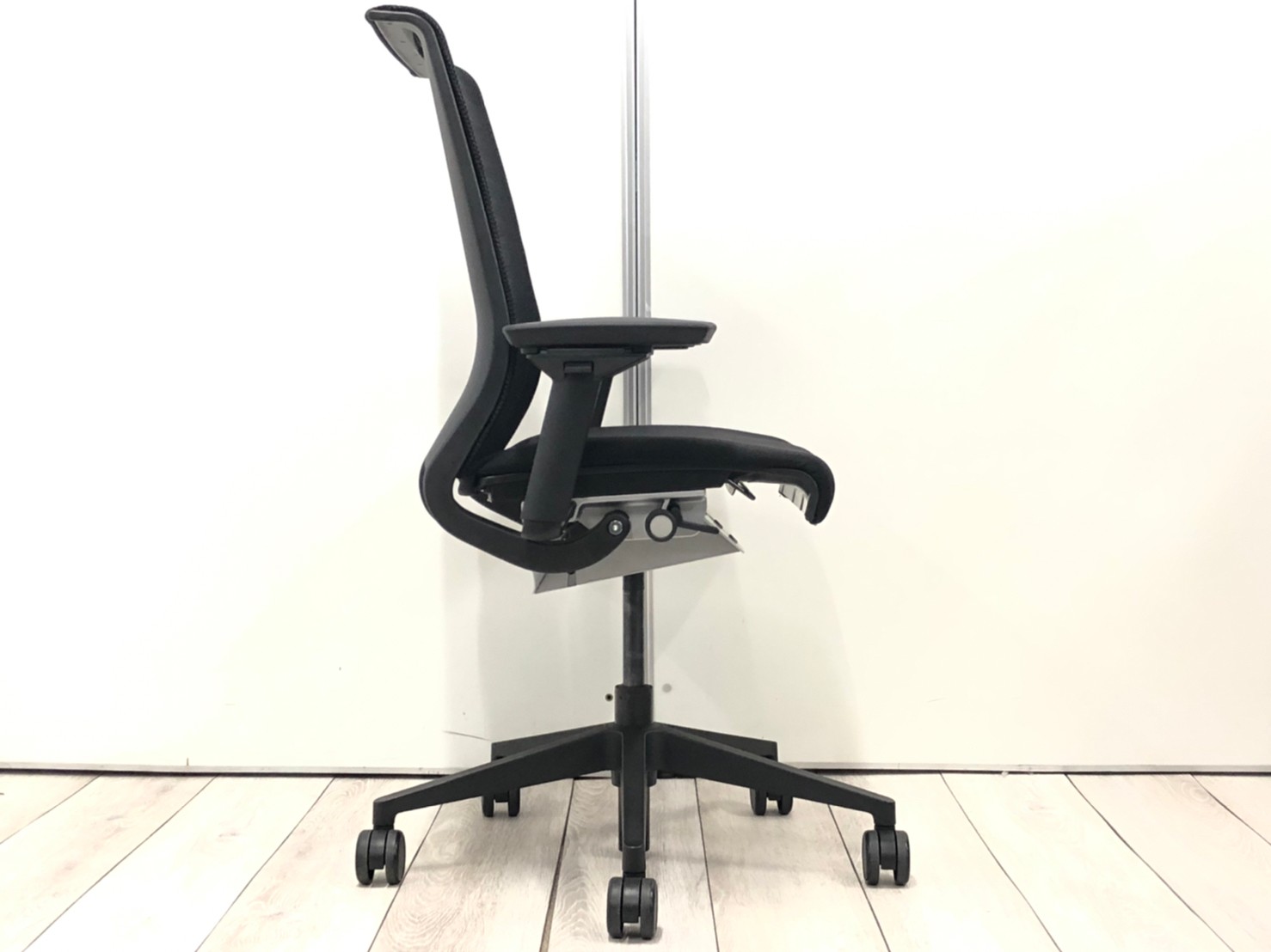 快適な座り心地に不可欠な調節機能である、上下昇降、座面の奥行き調整、リクライニングなどを備えており、操作もわかりやすく好評です。 特に、座面の奥行きは、座面下の左右に通った細いバーで調整でき、座ったままで軽やかに滑るように調整が可能です。 価格面では、新品では高めですが、中古は流通も多く、定価の3割前後の価格で高級チェアの座り心地を手に入れることができます!