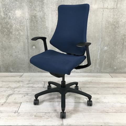 【包み込まれるフィット感!】 ■イトーキ製 エフチェア 肘付 ネイビーブルー ■デスクワークの疲労を軽減!