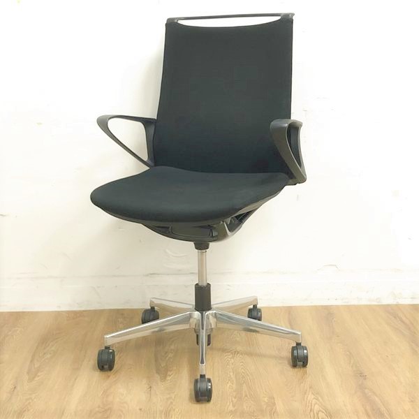 【在庫入替セール】オカムラ モード デザインアーム搭載 ミドルバック ブラック×アルミ脚 張地:クロス(プレーン) 高いデザイン性×シンプルかつ操作性のある機能