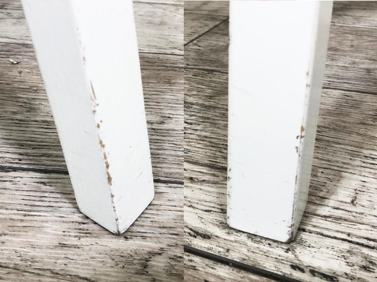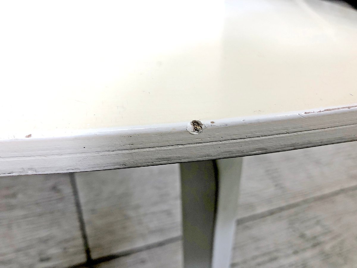 - かなり強い濃い黄ばみ・変色が商品全体にある。(例、座面・背もたれ、脚部等にある。)