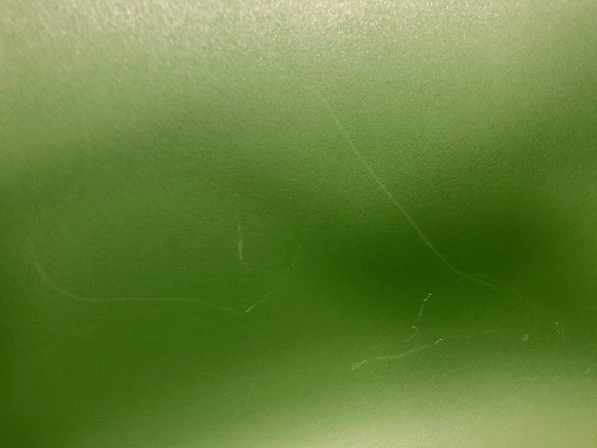 - あり黄ばみ・変色が広い範囲にうっすらある、または濃い黄ばみ・変色が一部ある。(例、座面・背もたれ、脚部等にある。)