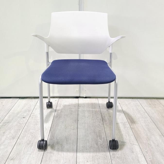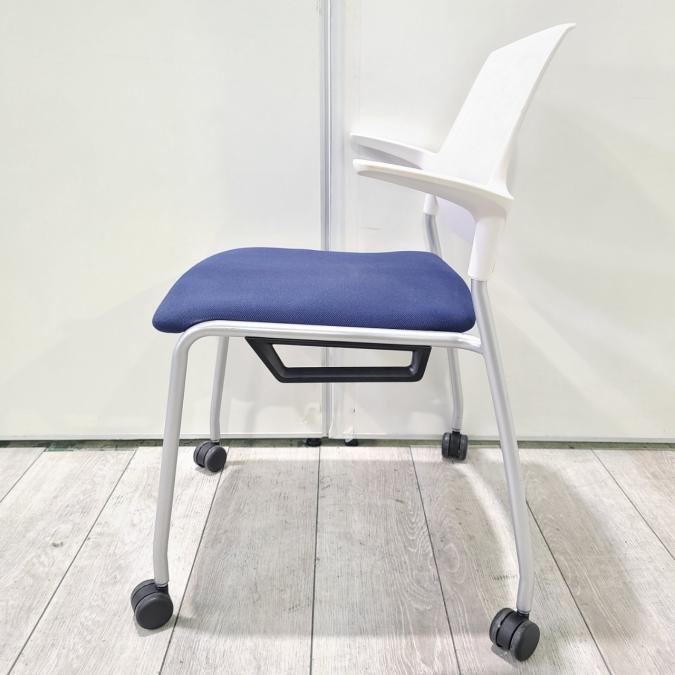 【T11】【商品入替のため、在庫限り】イトーキ製 ステンザ インディゴブルーxブラックのツートンカラー キャスター 積重ねタイプ スタッキングチェア!!