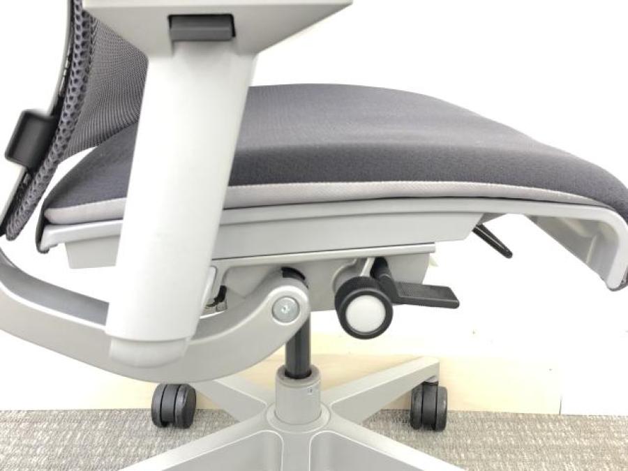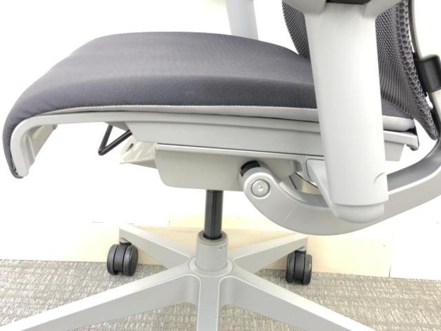 快適な座り心地に不可欠な調節機能である、上下昇降、座面の奥行き調整、リクライニングなどを備えており、操作もわかりやすく好評です。 特に、座面の奥行きは、座面下の左右に通った細いバーで調整でき、座ったままで軽やかに滑るように調整が可能です。 価格面では、新品では高めですが、中古は流通も多く、定価の3割前後の価格で高級チェアの座り心地を手に入れることができます!