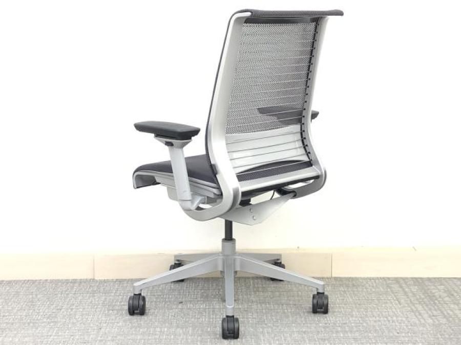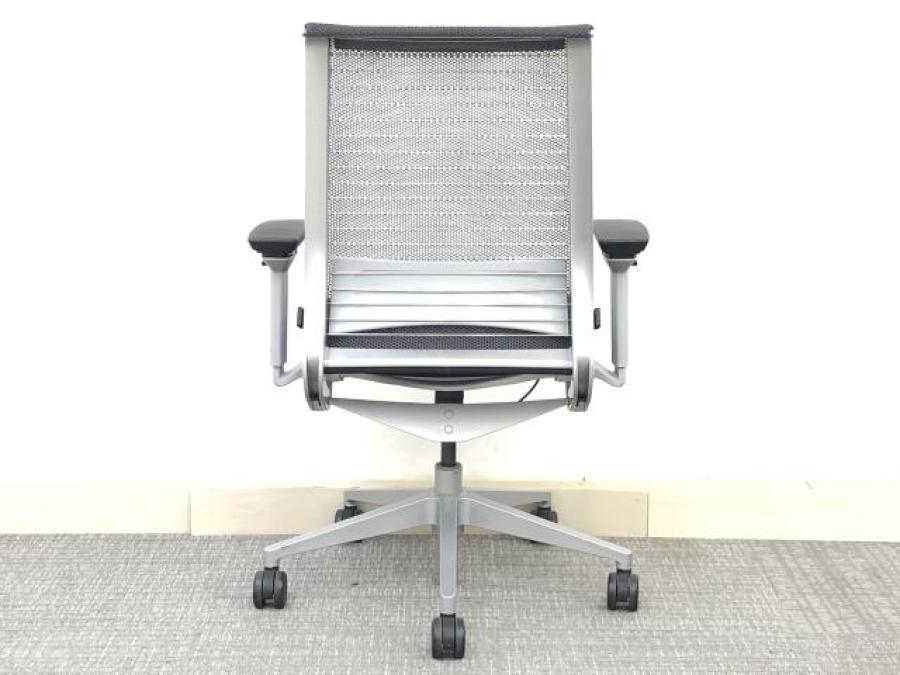 【4脚限定】【長時間使用にもオススメ!】■スチールケース シンクチェア 3Dニット 可動肘 ランバーサポート付 ニッケル【在庫入替品】- なんば日本橋店