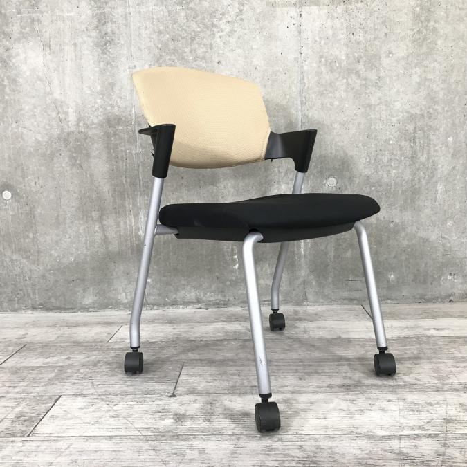 【3脚入荷】ミーティングチェア売れ筋No.1 移動ラクラクキャスター付き※背もたれベージュ色◆コクヨ製【RP】- 埼玉本店