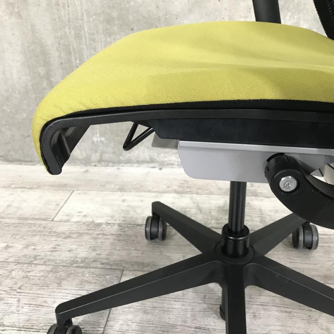 快適な座り心地に不可欠な調節機能である、上下昇降、座面の奥行き調整、リクライニングなどを備えており、操作もわかりやすく好評です。 特に、座面の奥行きは、座面下の左右に通った細いバーで調整でき、座ったままで軽やかに滑るように調整が可能です。 価格面では、新品では高めですが、中古は流通も多く、定価の3割前後の価格で高級チェアの座り心地を手に入れることができます!