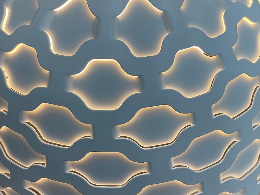 よろい戸の隙間から漏れているかのような光が、目に心地良い印象を与え、部屋にソフトな光を広げるペンダント。