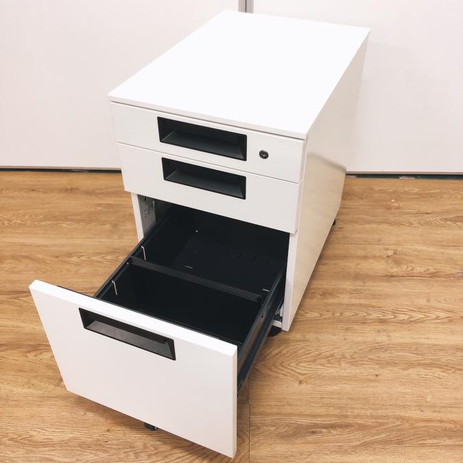 3段ワゴン ホワイト プラス PLUS フラットライン デスク下 収納力 キャスター付き- 大阪梅田本店