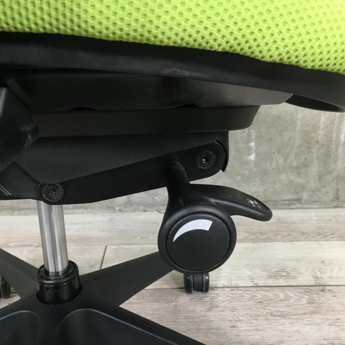 - 座面右下のダイヤル操作で、リクライニングの強弱調整が行えます。これまでのダイヤル式よりも、少ない回転数で、最弱?最強の調整が可能です。