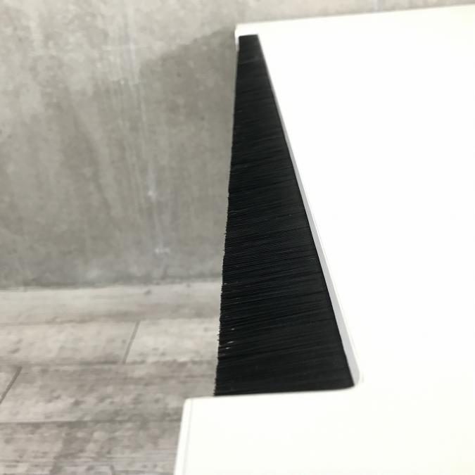 始めて取り扱う形状の商品です。書庫としての機能と配線などを収納する機能を兼ね備えており