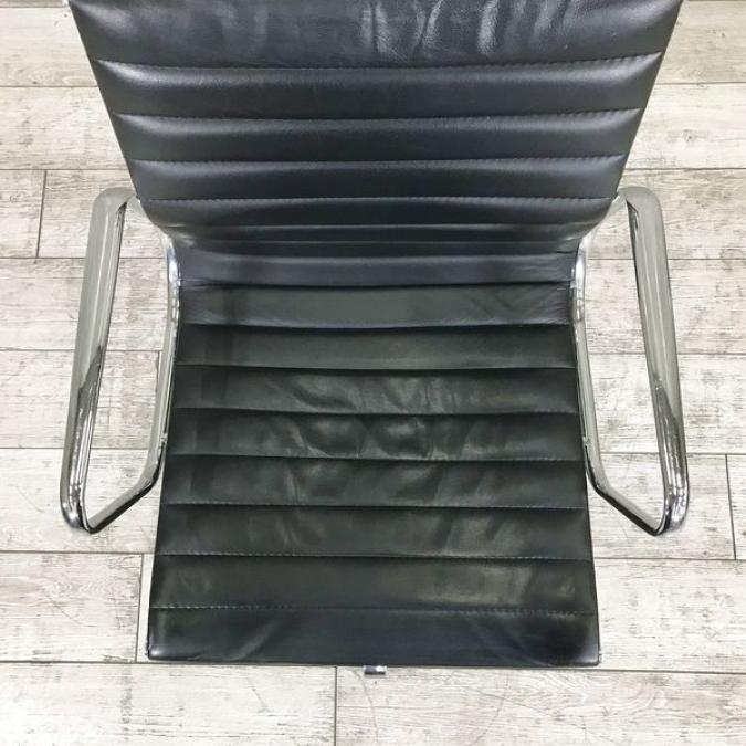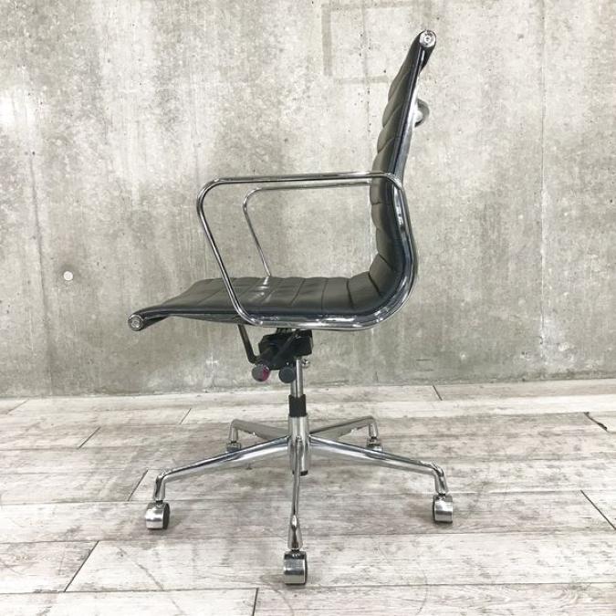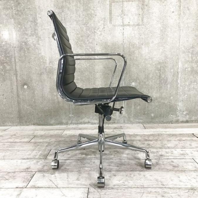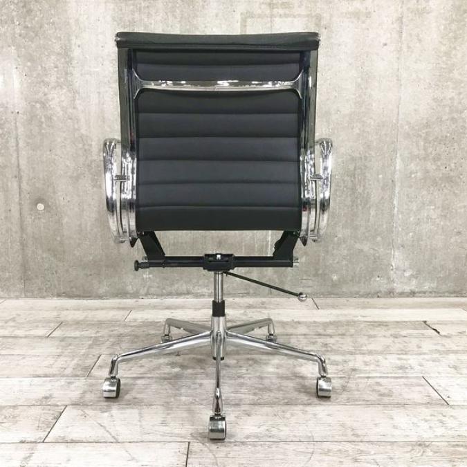 デザイナーズチェア イームズアルミナムチェアのリプロダクト ミッドセンチュリー PVCレザー 黒 会議室・応接室向け- 名古屋千種店