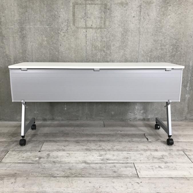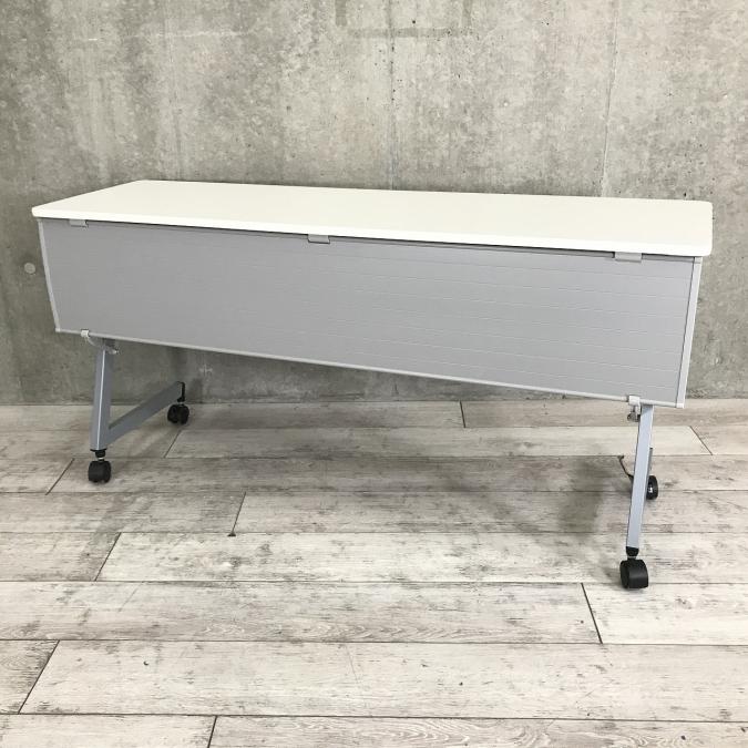 【4台入荷】状態良さそう!真っ白ホワイト天板テーブル※幕板付き&平行スタック仕様◆イトーキ製【RP】- 埼玉本店