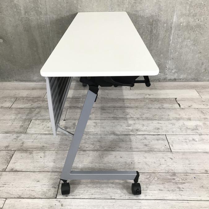 【天板跳ね上げ式でコンパクトに収納!2人使用にお勧め!】■イトーキ(ITOKI) HXシリーズ サイドスタックテーブル 幅1500×奥行600 ■幕板付き ■ホワイト天板