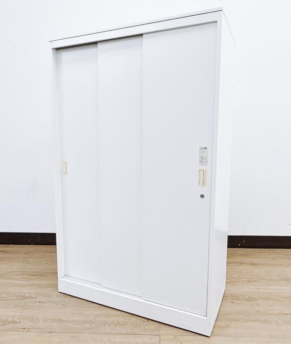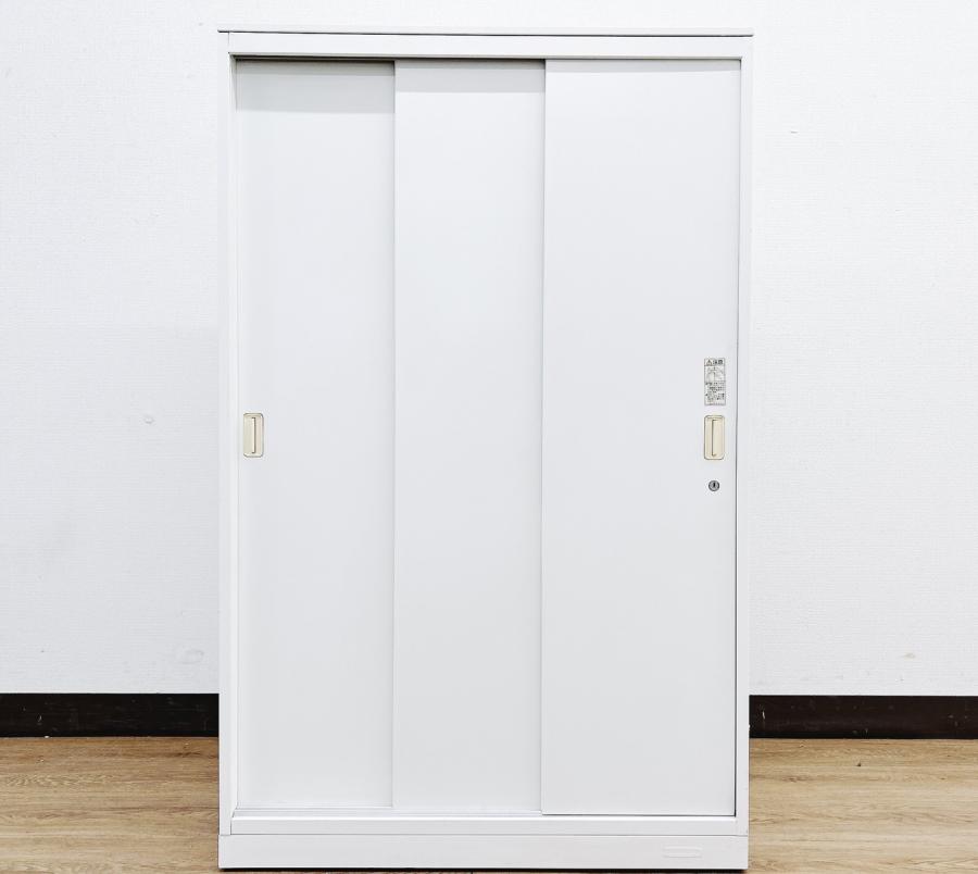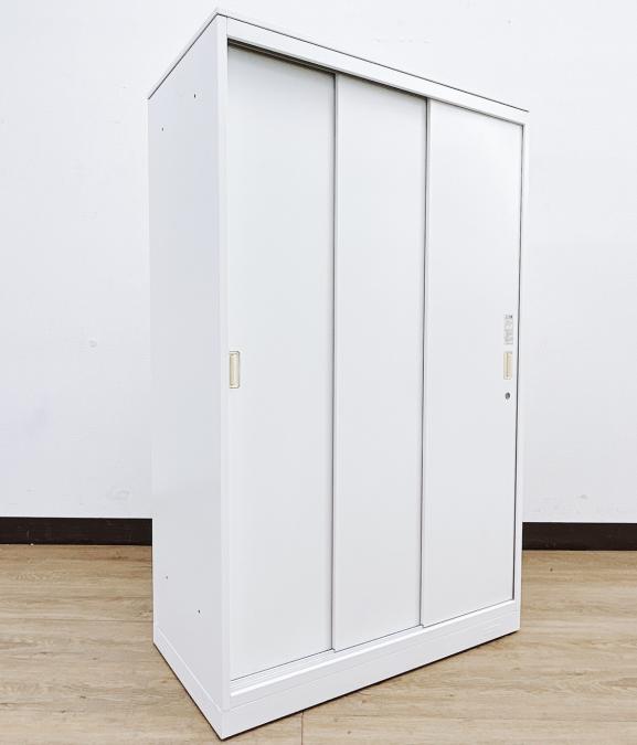 オカムラ製 人気レクトラインシリーズ ホワイト シリンダー W800xD450XH1050 3枚引戸 ※ベースなし 3枚引き違い書庫!!