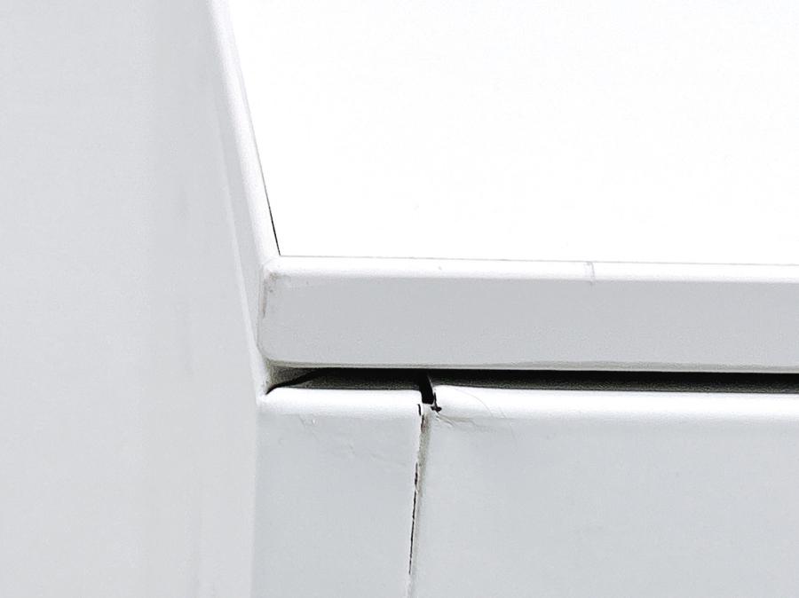 - 目立つ箇所複数あり深い傷・凹みが商品全体にある。(例、天板、正面、背部、サイド部分にある。)
