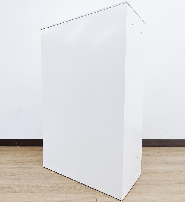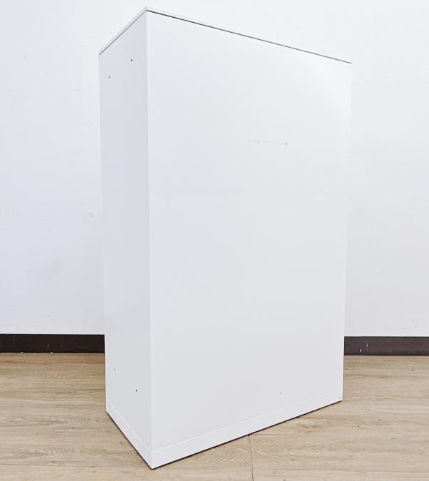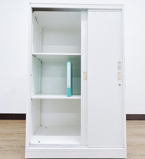 2枚引き戸書庫 オカムラ レクトライン 鍵付き シリンダー錠 ホワイト 天板無し スライド式の扉のため導線を邪魔しません