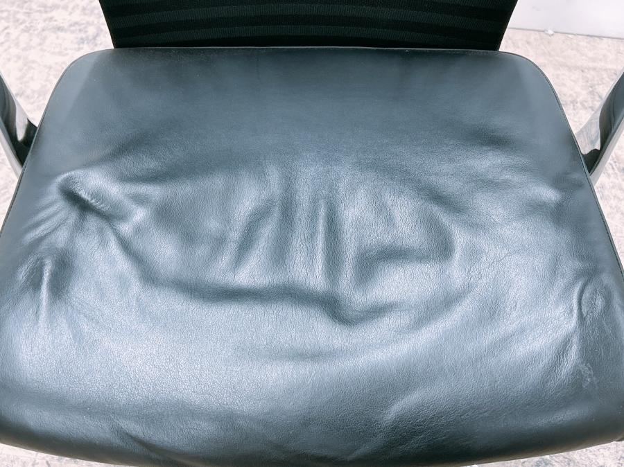 キズ:背もたれトップ部分メッシュ破れ数箇所、革張り座面シワ寄り