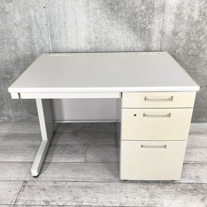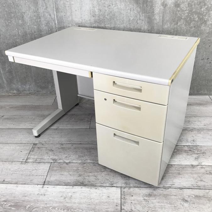 コンパクトな片袖机 幅1000㎜ コクヨ製 BS 収納付き 汚れが目立ちにくいニューグレー色- 新大阪店