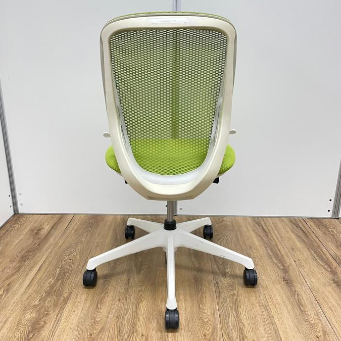 【クリーニング済み商品!!】【フレームに目立つ日焼けある【商品入替のため特別価格】オカムラ製 シルフィーシリーズ ライムグリーンカラー 肘無しローバックチェア!!- 京都東寺店