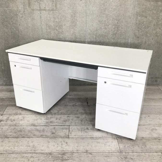 【T11】【商品入替のため、残り4台限り】コクヨ製 アイエス(IS) ホワイト 両袖 デスク W1400xD700xH720サイズ シリンダー 収納スペース充実! 机上をスッキリ整理! 幅広いワークスペースで上長席にもオススメ! W1400両袖机!!